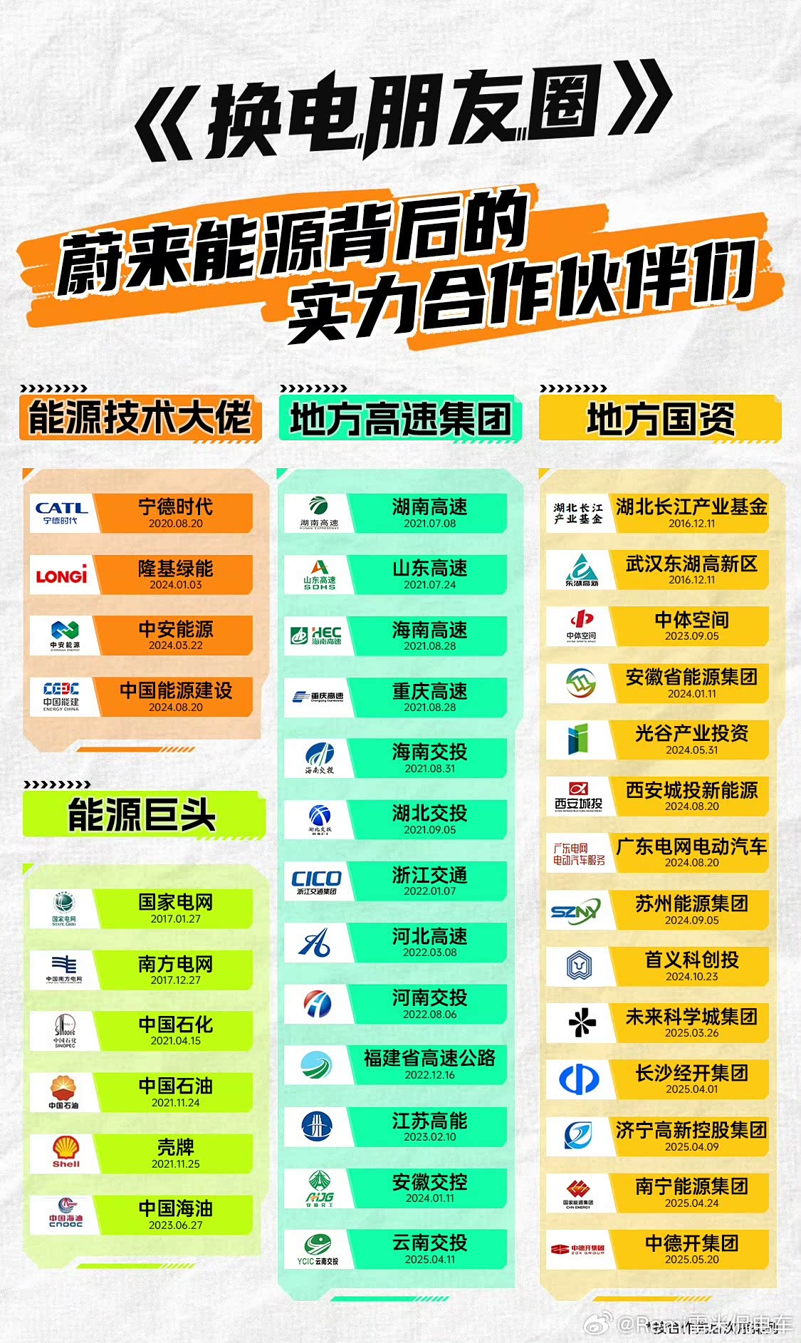 这么大的投资体量,光靠蔚来一家肯定很难。大家不知道的是蔚来身后站着地方国资、地方高速集团、能源巨头等相关行业的巨型企业。有他们的支持,蔚来基建才能保持这么高的速度和质量。