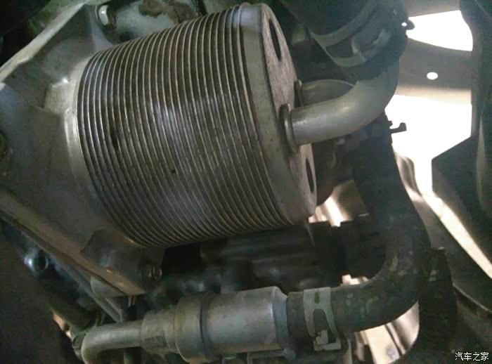 用布擦干净周围的油迹后就把新滤芯装回去。在装回散热器时出现了一个问题,散热器上有一个O型密封圈变大了,装不回去,后来打电话到卖油的店主那里问他有没有这O型圈,但他说厂家根本没这配件卖,所以他也没有,最后他说O型圈变大了是因为冷缩热涨的原因才变大了(我车换油前是出去开了半天后才回来换的,车才停了半小时左右,波箱还是热的),他叫我把O型圈拿到冰箱里放一会再拿到车上就可以装了。(我照做了,这招果然有效