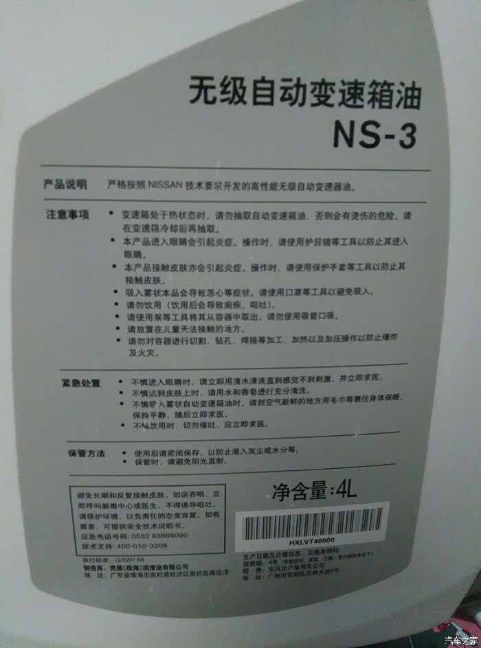 壳牌代工的波箱油,经过扫描二维码是正品。发动机仓那里的标签写着原厂油是用ns-2的,我现在用比ns-2高一级的ns-3。