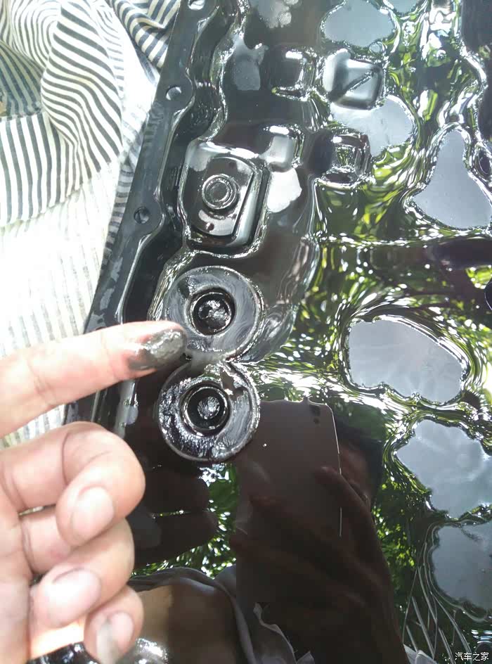 新买的油底壳垫片因为原车的没坏,我就没换。装油底壳前在垫片上抹了一层薄薄的密封胶。把铁滤芯装好后就把油底壳装回去,把放油螺丝也装好。