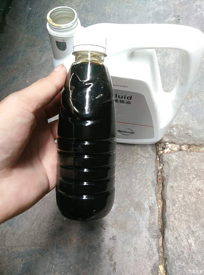 把所有拆下的东西都装好后就拔下波箱油尺,在油尺孔那里加了3升左右的新波箱油(用来做清洗),然后上车把车打着火,踩住刹车,把档位从P-R-N-D,D-N-R-P来回挂上几遍,在每个档位都停两分钟,等新油充分流到波箱的每个位置。做完这一步就把车息火,等十分钟就再把波箱的放油螺丝拆下,把波箱油放出来,等它滴到不滴油了再拧上放油螺丝,再重新给波箱加新油,然后插回油尺看看油量,感觉差不多就再把车打着,重复再做两遍PRND,DNRP后把车开出去跑几公里。最后在着车的情况下拔出波箱油尺看看油量,不够就加够就行了