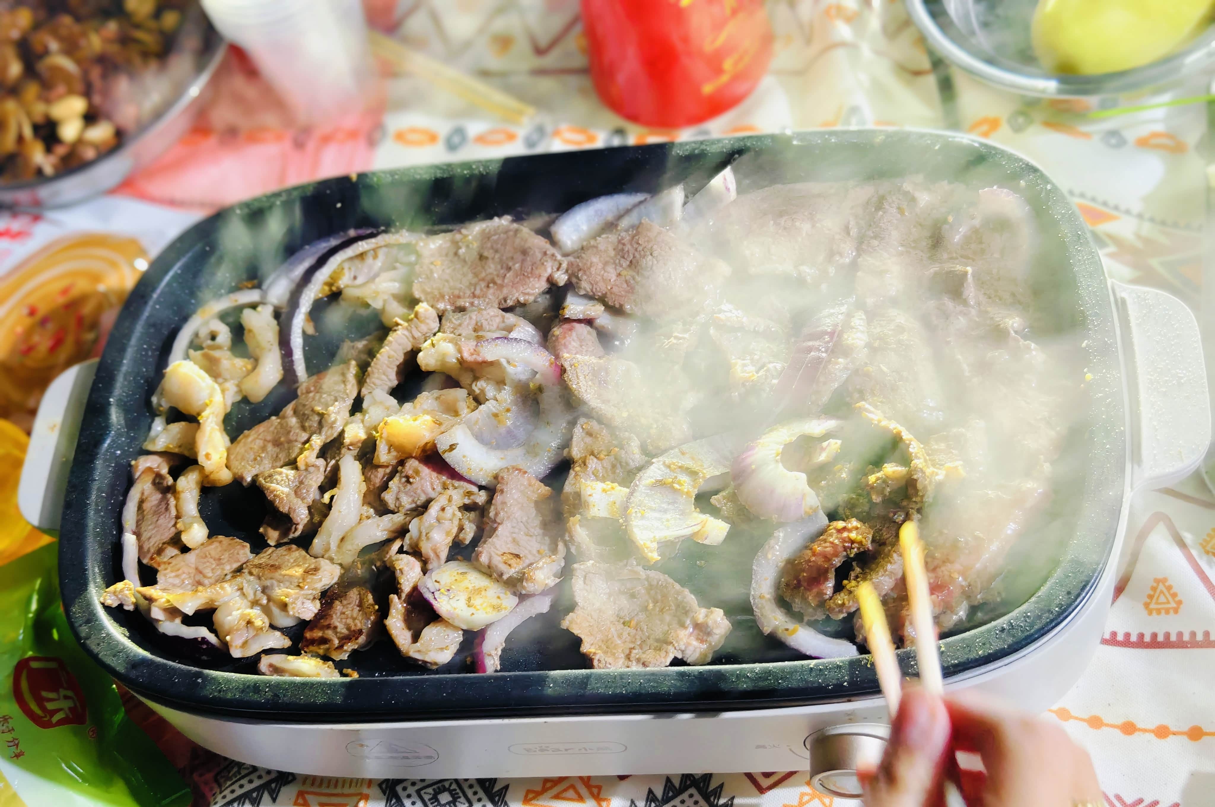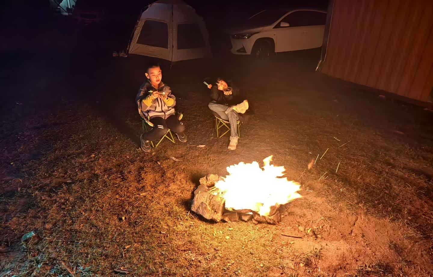 出来的较晚,天快黑了,插上车上的外放插排,露营灯能亮点,在当地买了纯正的内蒙古牛羊肉,这边烤肉滋滋响,那边火锅味儿也飘出来,孩子在旁边篝火烤红薯,土豆,三五好友天幕下喝酒聊天,蓝山就停在旁边,心里踏实极了。