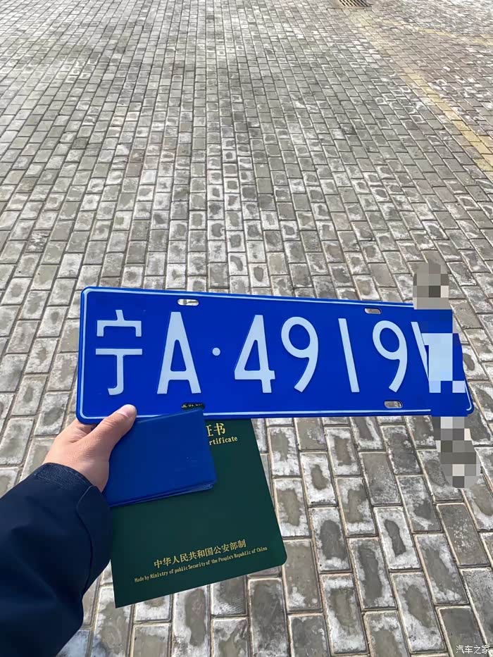 这家4S店只卖车,没有其他花里胡哨的,加装雷达啥的都没有,饭都不给吃,中午出去吃了饭,回来后领上行驶证、绿本、说明书、合同等等。就开始上牌了,上牌地方不远,先开出去加个油,然后走上牌地方领取拍照,新牌照见下图:当时感觉不如1455L,现在越来越觉得4919W好看了