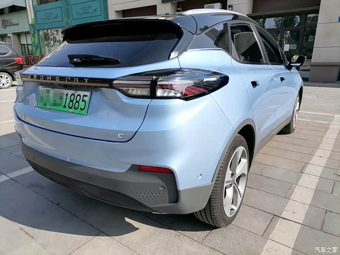 非常喜欢几何C的造型,好看,年轻有个性,兰色的颜色一眼就看中了,买的跟试驾车一个配置,看中的就是兰车身,黑色车顶,刹车卡钳绿色的很酷,增添了运动感。