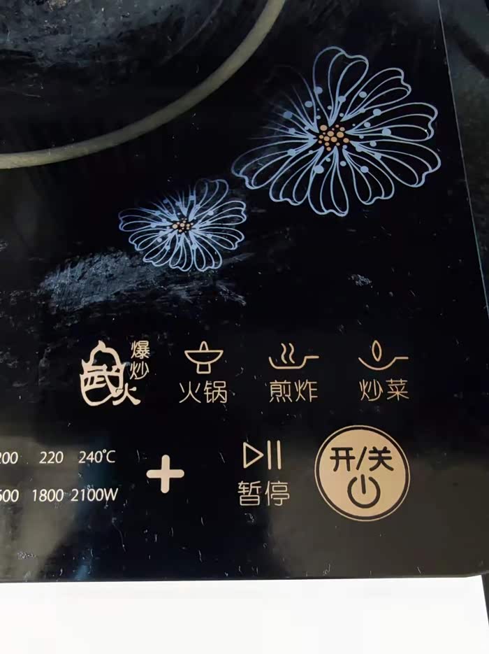 灶台台面是一块高强度、耐冲击的陶瓷平板(结晶玻璃)。