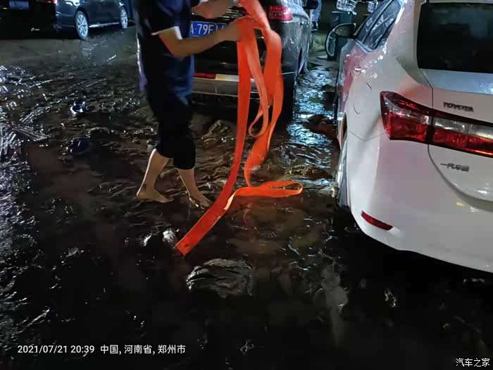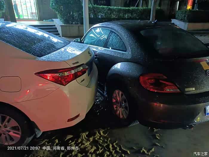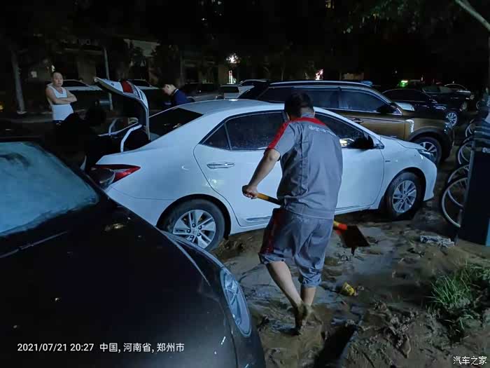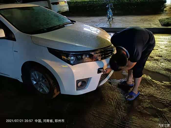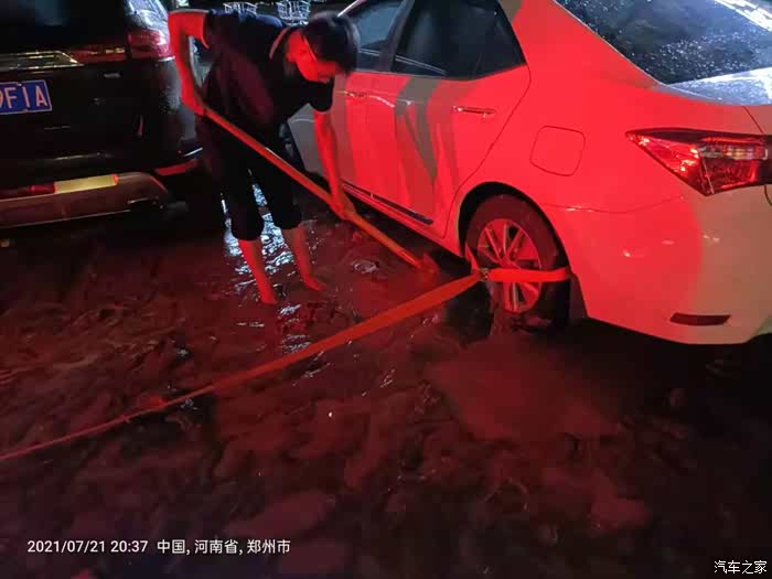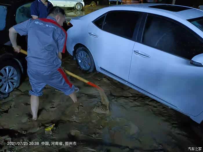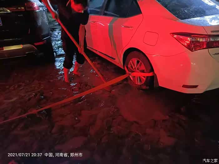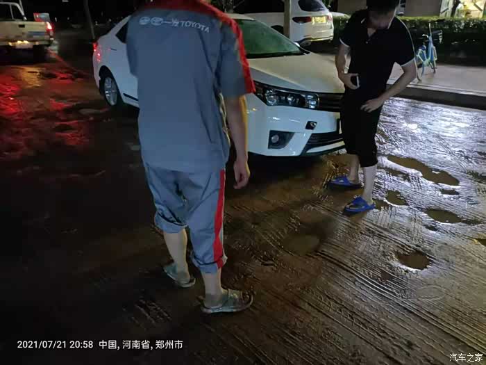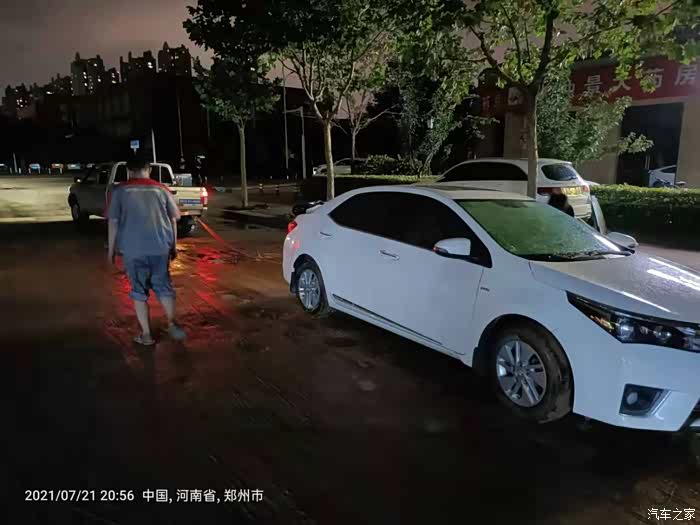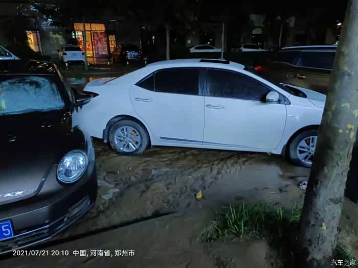 我跟同事这次去郑州开她的卡罗拉,当时就停在宾馆附近道路边上的停车框内,后来街上积水越来越多,刚开始的时候只是淹没轮胎,后来积水越来越深雨越来越大,已经淹没车轮快一半了,当时同事还说这样不行得把车挪一下,但是到处都是积水,根本没有比较高的地方可以挪车停放,再说郑州车辆保有量确实太大了,我们身处的那条街上,道路两边全是停的密密麻麻的车辆。最后就这样只能看着这台卡罗拉慢慢被水淹没,从楼上窗户看过去水最深的时候差不多已经到了倒车镜位置,站在楼上就能看到有些车好像是飘了起来,水很大形成水流把有的车冲的离开原位,有的车还互相碰撞在一起,我们开的这台卡罗拉就跟挨着的大众甲壳虫碰在了一起。好在我们住的宾馆那天没有停电,也不是市区的重灾区,再后来很多地方都停电了,毕竟这个突如其来的灾难谁也不能预料,我同事也想得很开,毕竟这台老款卡罗拉也开了好几年,去年评估过也就值六万五千块钱,只要人好好的,车被淹受损是有保险可以理赔的。
