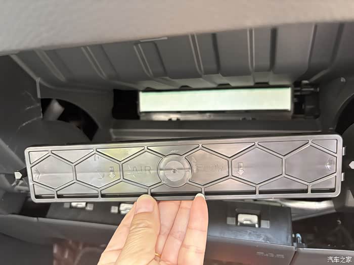 6.找到空调滤盒,把外面的盖板两边一按,就顺利取下来了。