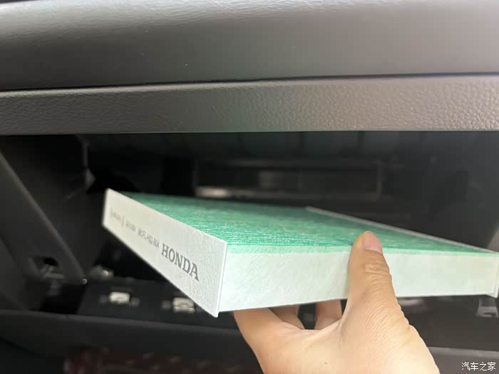 8.轻轻拉出空调滤芯,看这状态,还是换个新的吧,确保车内空气清新很重要。