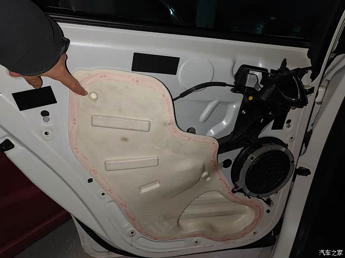 另外还发现四门的隔音棉有不同程度的脱胶,好在提前买了双面胶,四门隔音棉粘胶全部铲了重新粘上!后来觉得隔音好了一些,也不知道是不是心理作用。