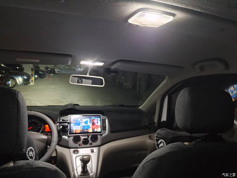第三排的顶灯是自己加装的,网购LED灯珠,装上后很亮。夜晚车内很温馨。有NV,这个冬天不会冷