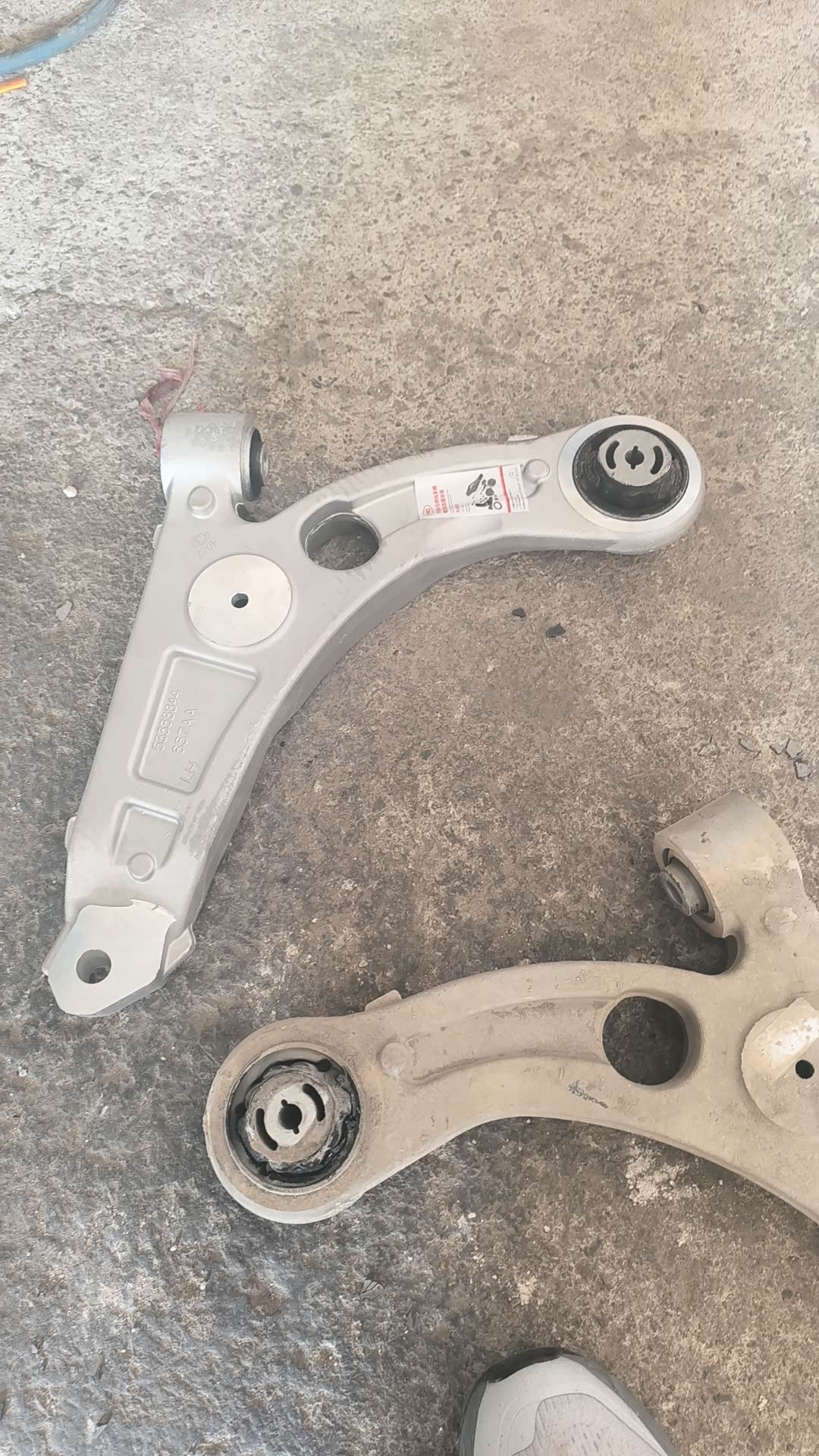 最近在行驶中有轻微异响,于是就去朋友的汽修店里面检查了一下,发现下摆臂的胶套烂了,刹车片也磨损了,得更换了。不得不说,美系的车底盘真是硬派,jeep的用料也扎实,羊角,下摆臂,全是铝合金的,不像现在的车子,就两片铁片,一碰就崴脚😖😂,光一个下摆臂就差不多3.5斤重。8年的车了,底盘下面没一点生锈的地方。