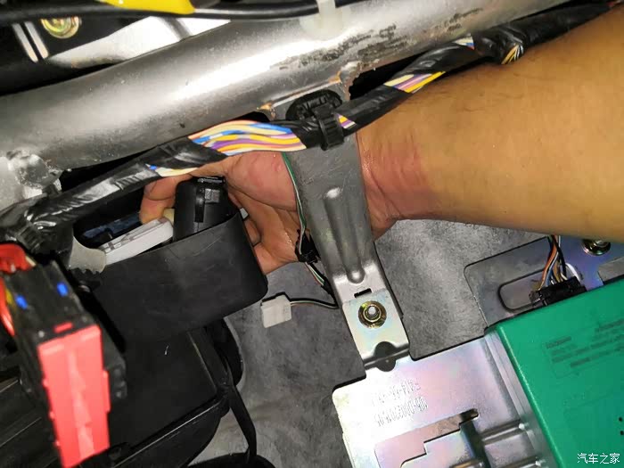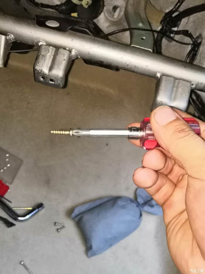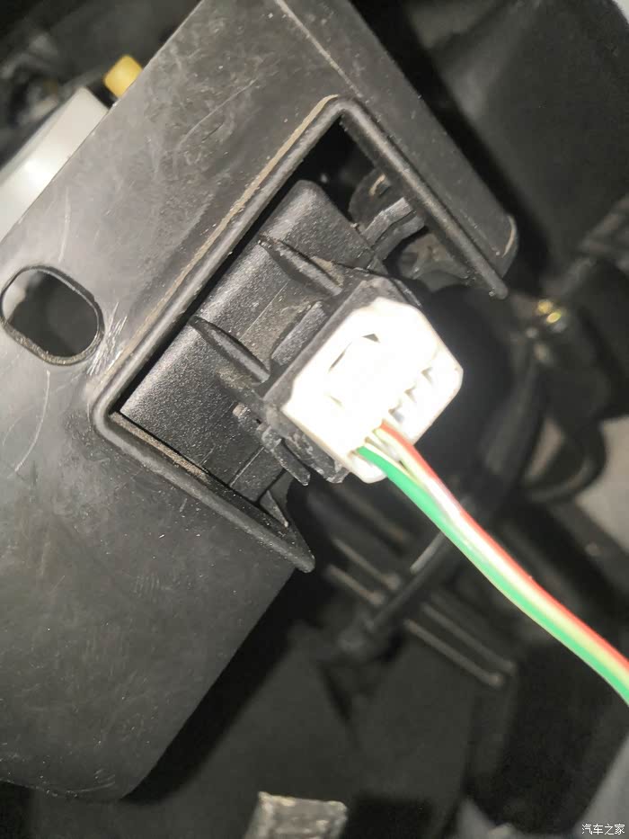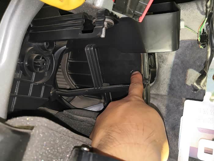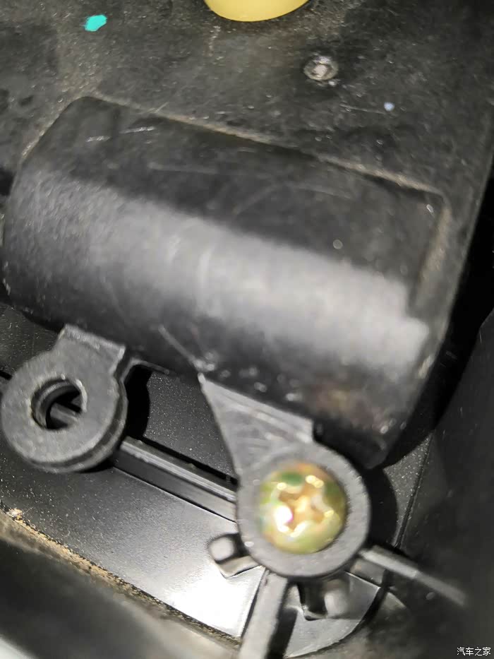 内外循环电机,是有五个脚。下面的两个螺丝,只有两边可以用。上面只有左上方的一个可以用,三个螺丝固定,熟悉之后,就要摸索着盲操作,拆卸螺丝。