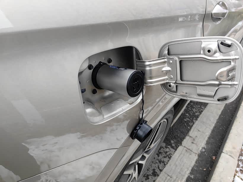 第一步,将放电枪插到充电口上。