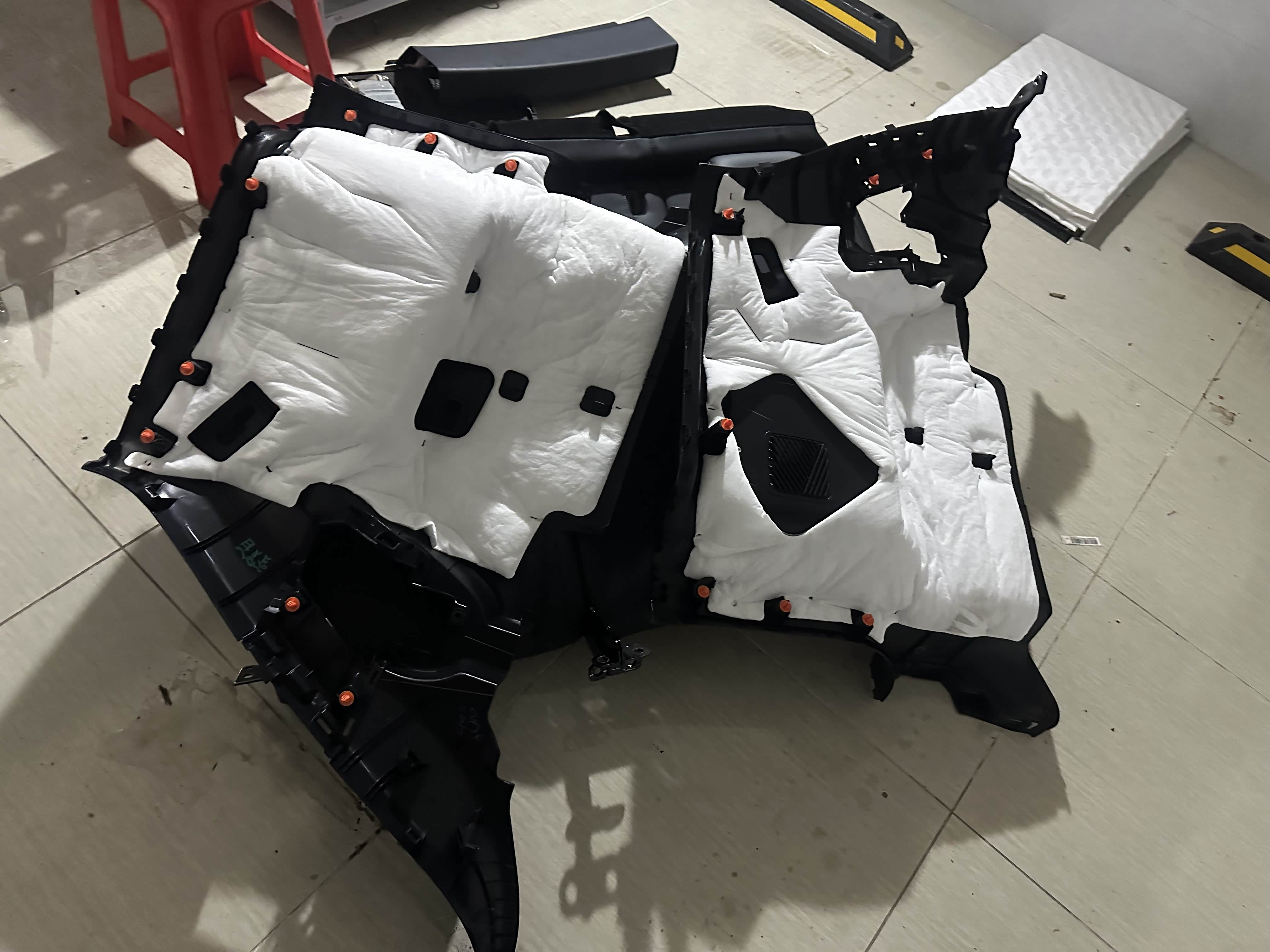 拆下来后的样子,本想着把这黑棉换成白吸音棉,后面懒得弄,还好没弄,不然材料不够。