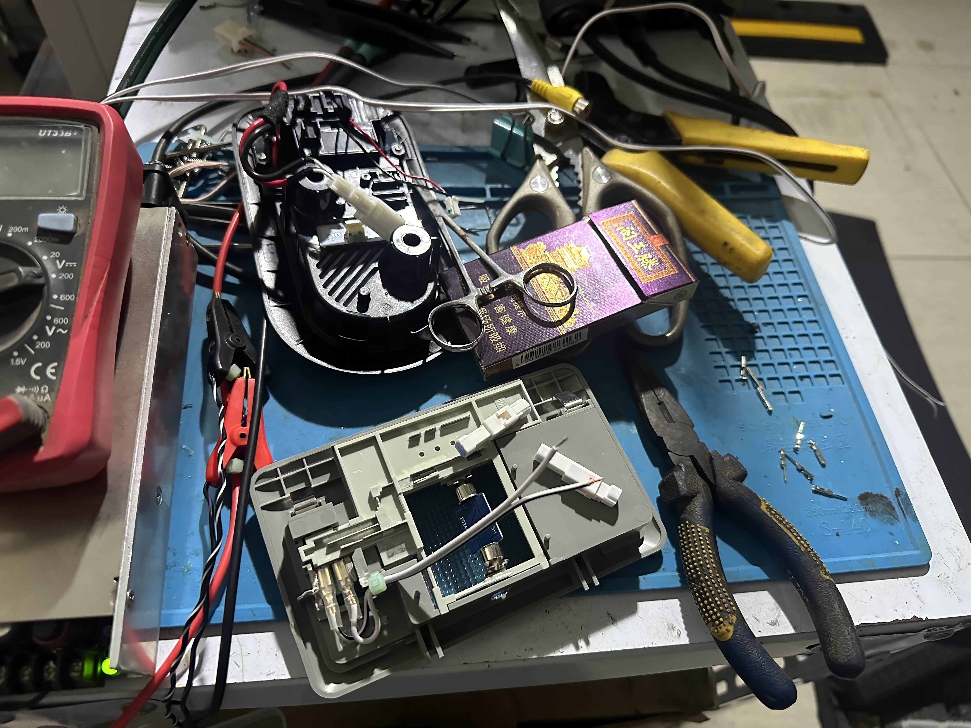 原车阅读灯那用电烙铁焊接出来电源信号,不焊接也行破那小红黑线也都可以,焊接出来的线和新增的后排阅读灯接上,我这里都用了可以方便插拔的小插头。