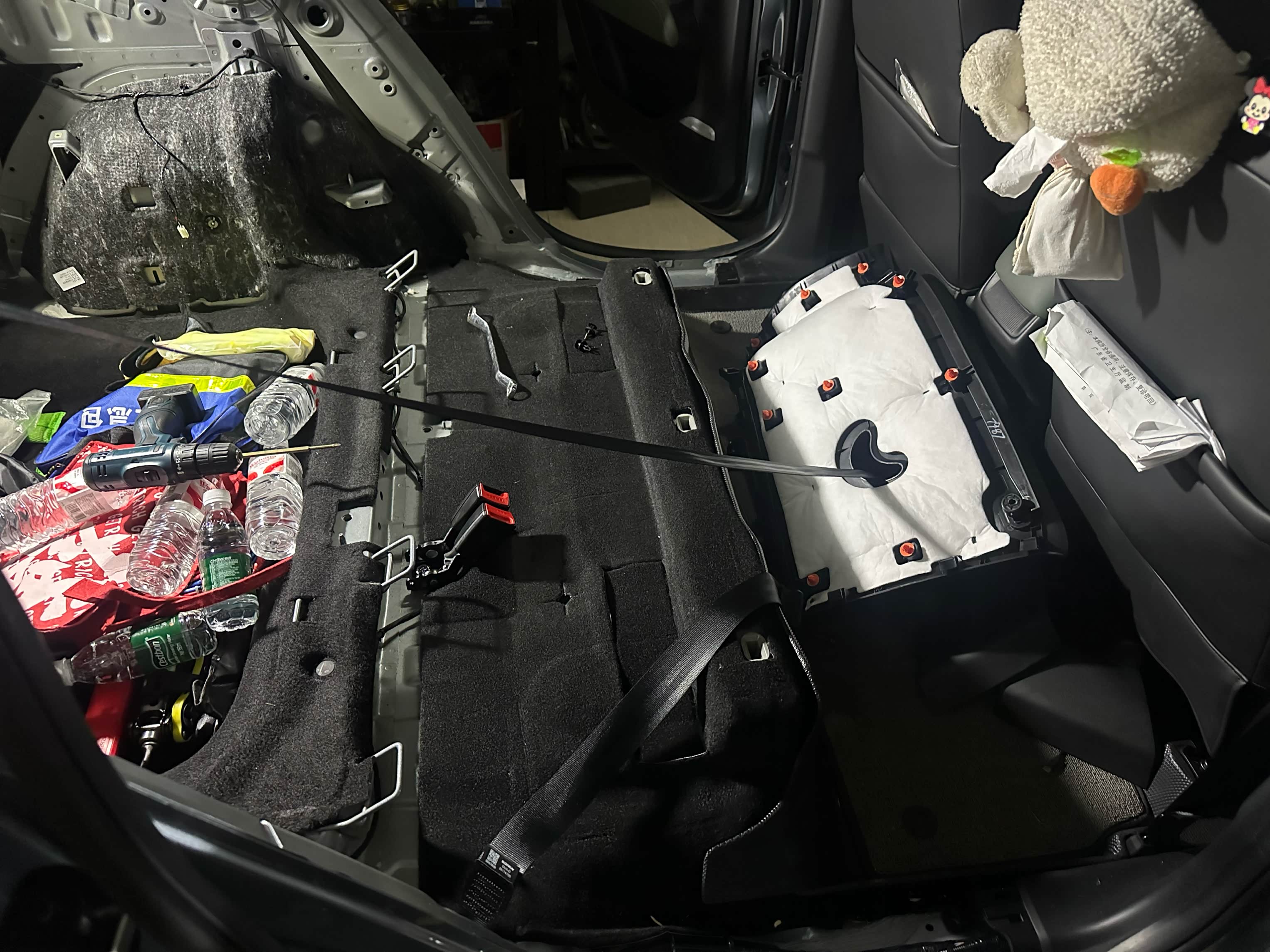 第一步先拆后排座椅,详细过程就没拍了,因为我发现看我帖子的大多数都是没看得那么细。