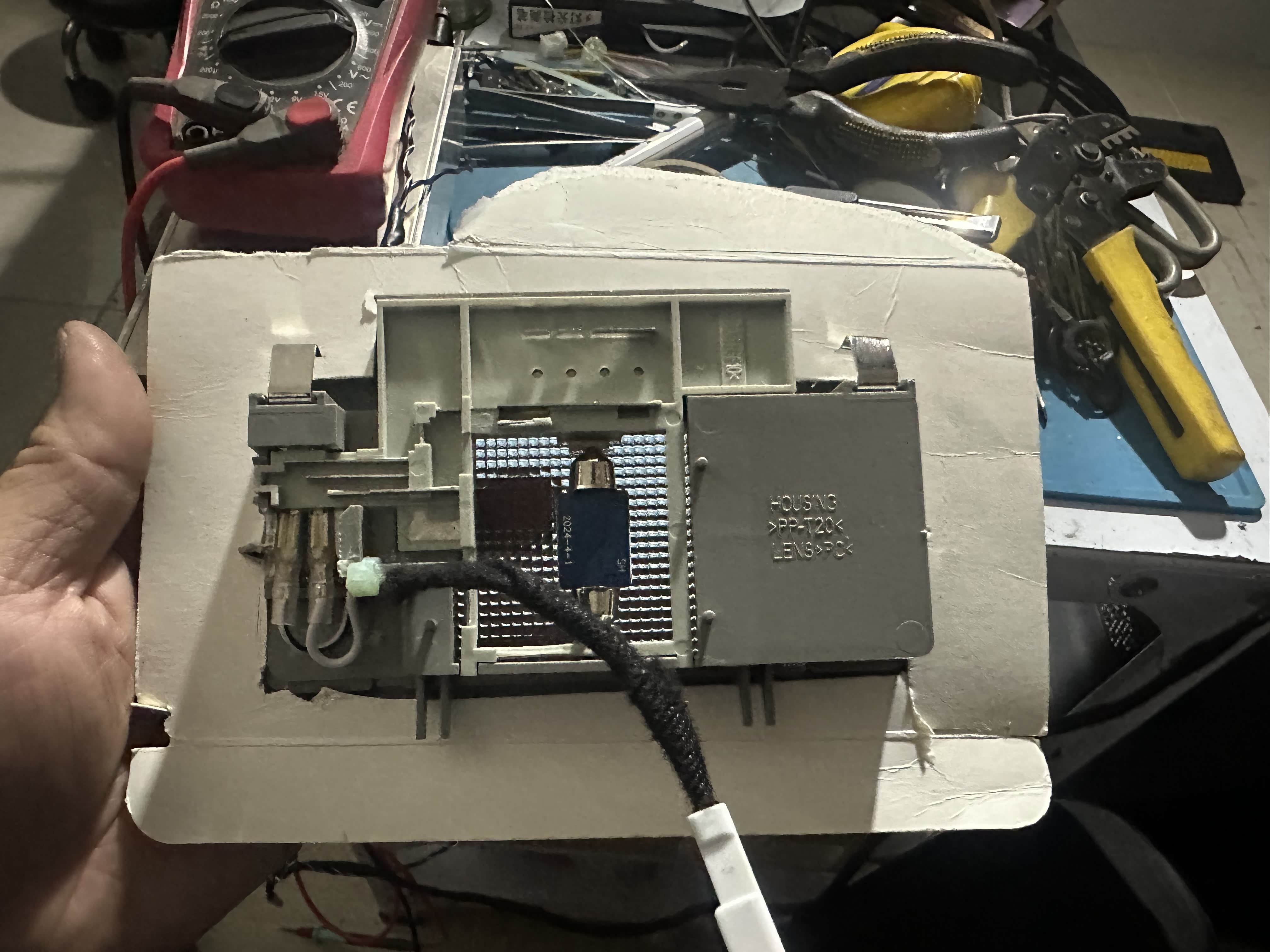 由于搞到这里太晚了,老爸睡觉了,叫来隔壁小卖部老板帮忙抬顶棚内饰板回车上,接回原车阅读灯所有插头,并把新加装的后排阅读灯插头也给对接上。