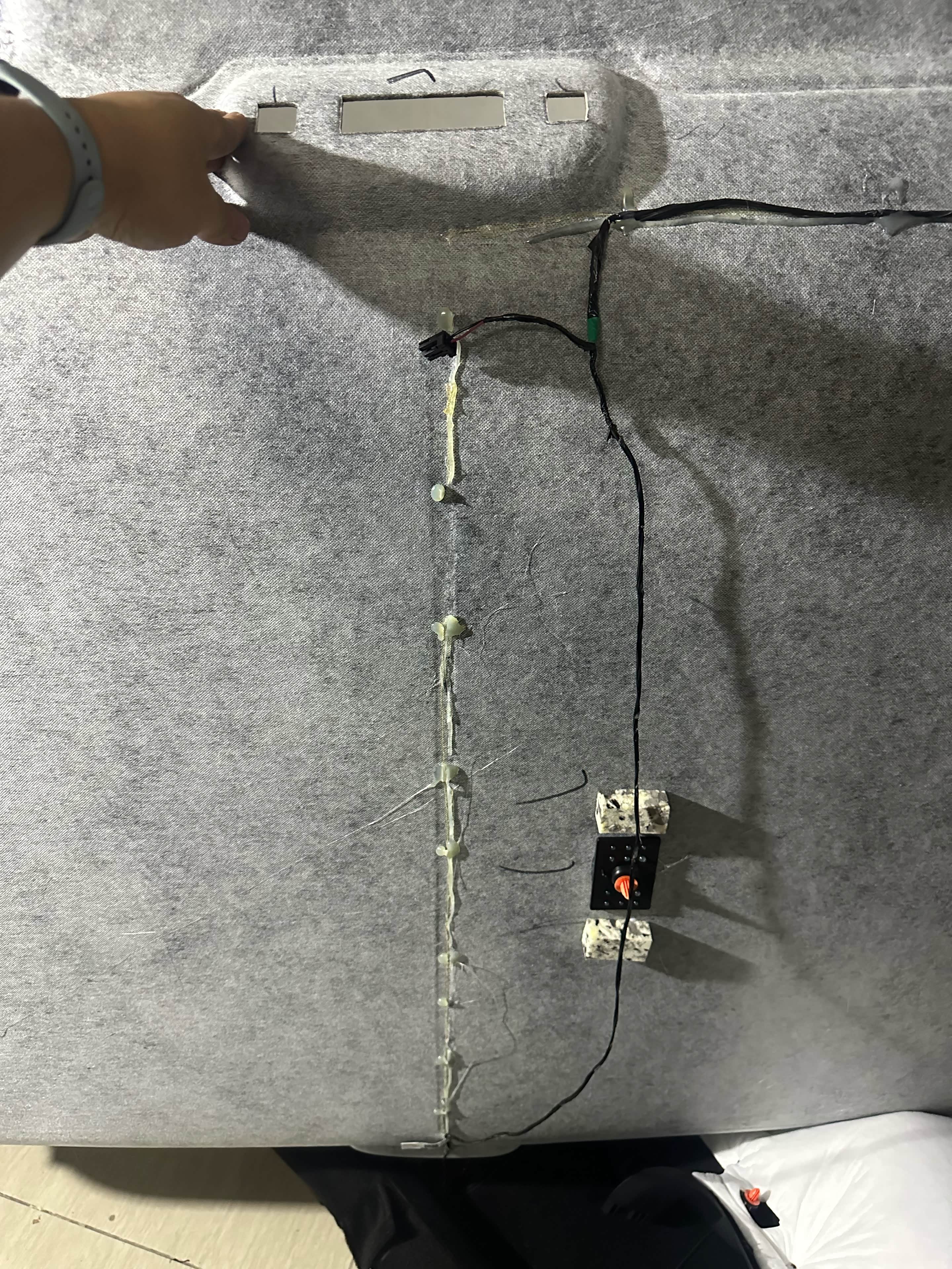 原先的后排拉手灯线用热熔胶粘上去了,新增的线也一样粘住固定。