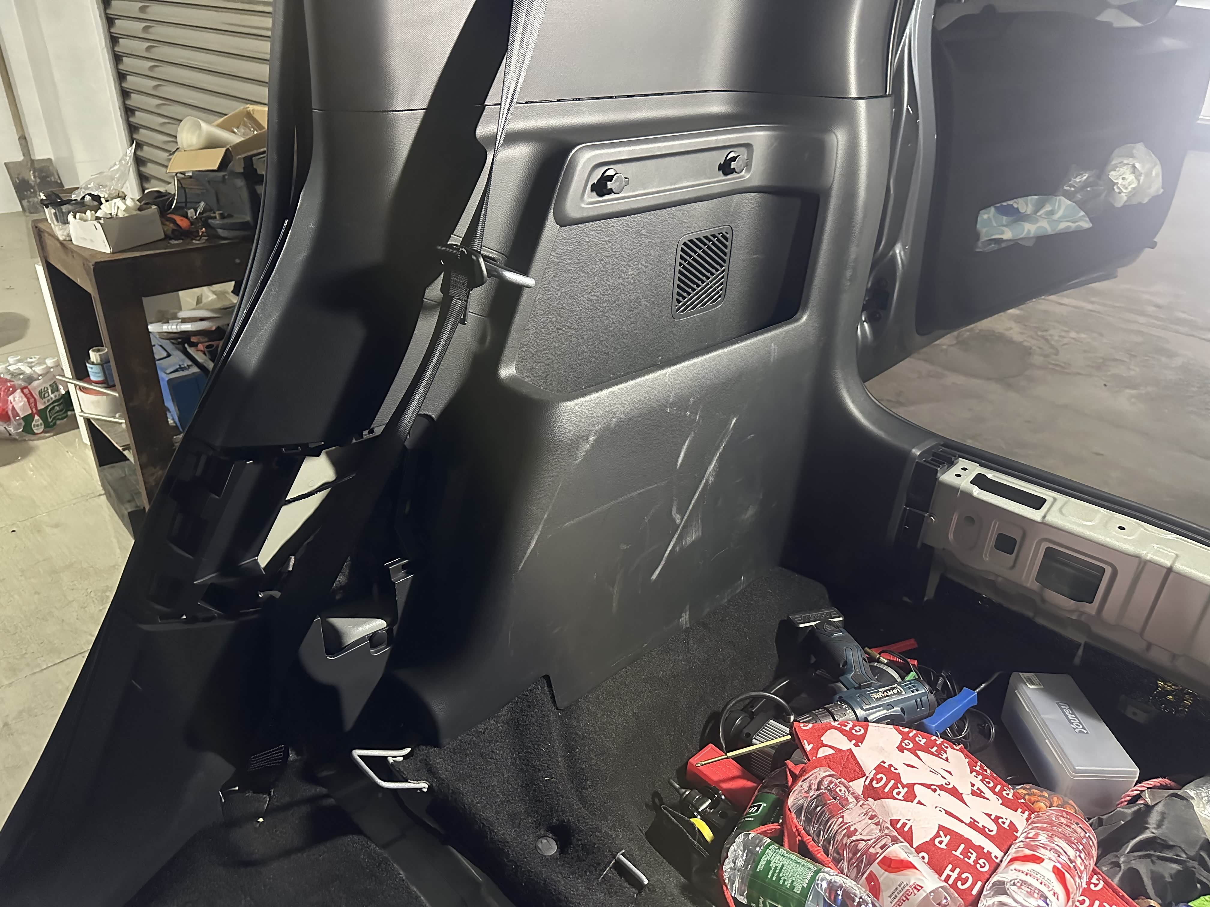 B柱这块拆成这样即可,不用完全拿下来,不然也是要拆安全带的。