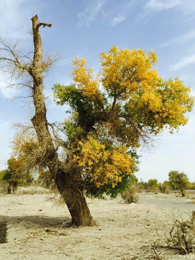 时间还未到,听说10月20号以后,胡杨才变色的,现在还是绿色