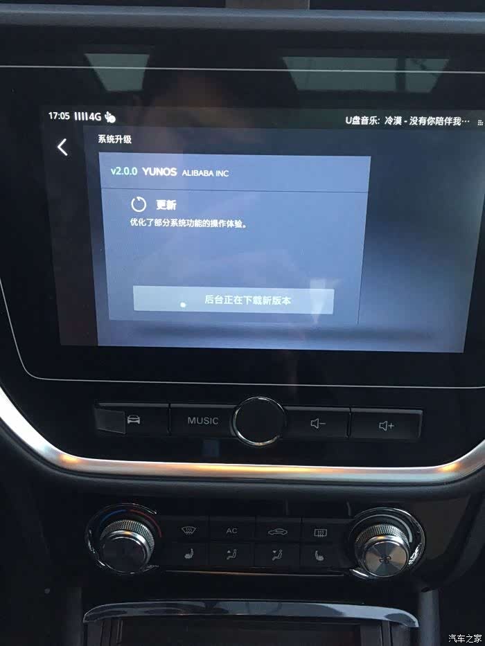 从车到手的那天起,就听说斑马系统要更新2.0系统了,RX3排到了1月9号才进行推送升级,其实蛮期待,每个人都对未知的事物才有好感,由于这几天在休息,所以就没事在论坛瞎转悠呢。论坛也有很多人和我一样在期待什么时候能升级呢!傍晚的时候下楼放点东西到车上,就随意地打开一看,咦。已经有推送升级了,当时还激动了一下,跑上楼拿手机来拍个照留个纪念,毕竟这只有一次,O(∩_∩)O哈哈~,好了,不说废话了,上个简单易懂的教程,完全就是一键式的升级。