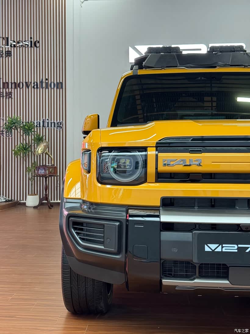 iCAR的外观设计一直都很在线,复古越野风格拿捏得很到位!这次偶然的机会,拍到了这台V27,实车很有质感,尤其是这款很正的黄色。