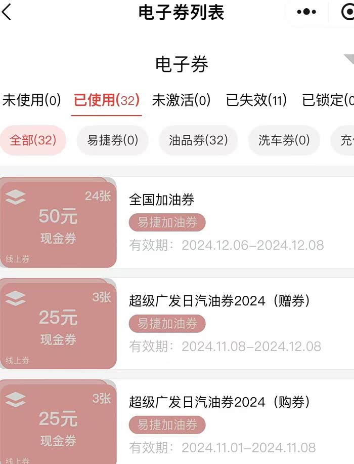 部分地区有时候下载中石化app易捷加油,就会随机赠送一些优惠劵,如满200元优惠22元或者加油300元优惠30元等等。