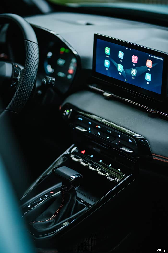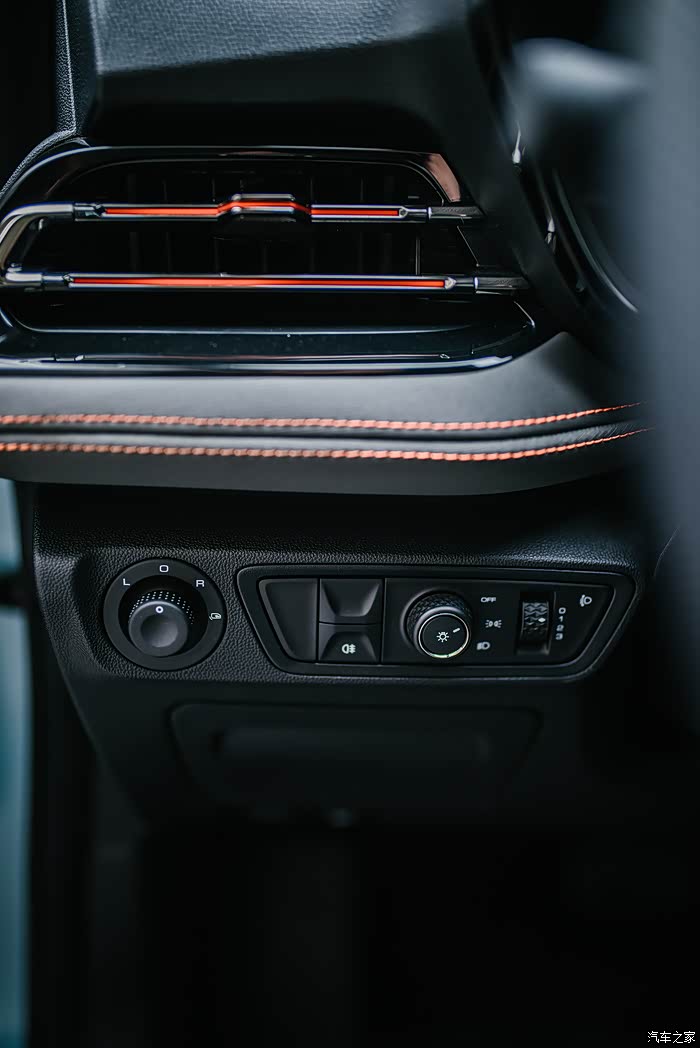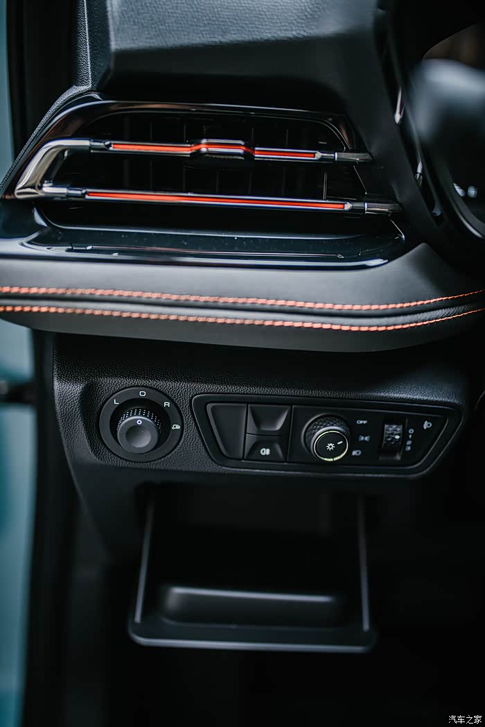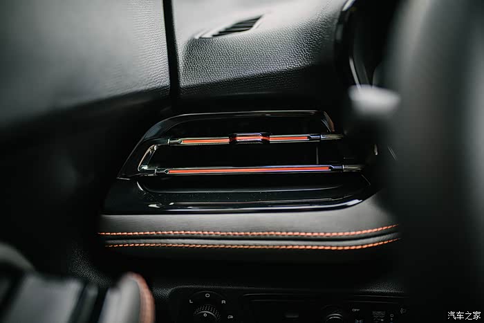 仪表台正面运用的包覆饰件,采用不同的纹理材质,显得更加运动、时尚。