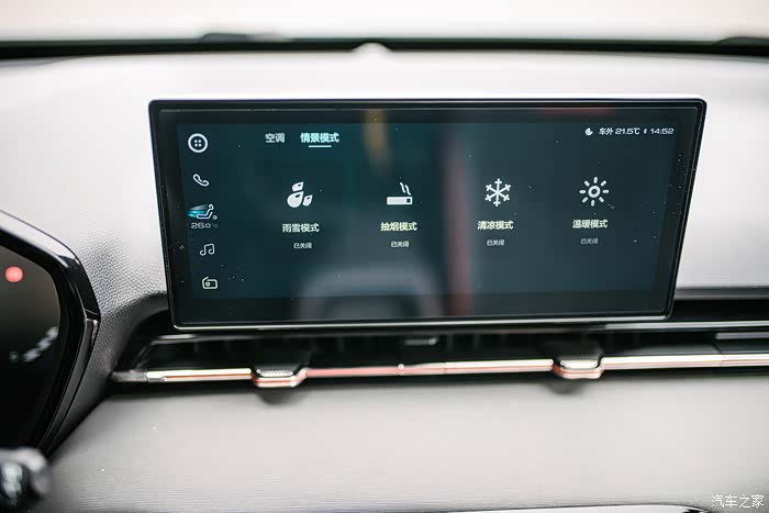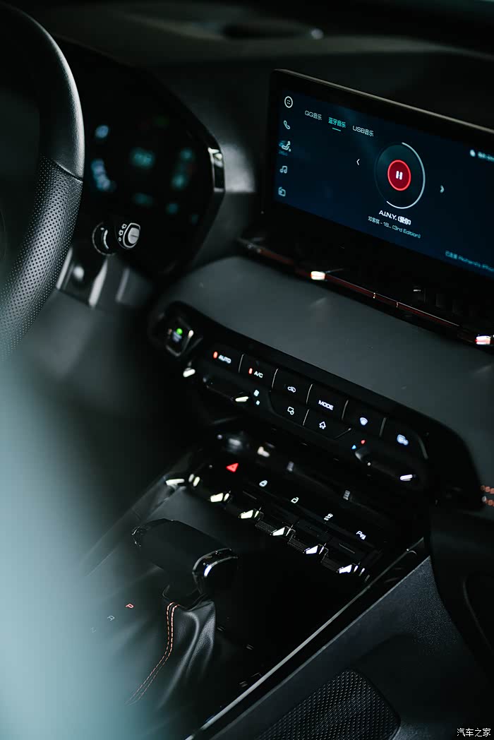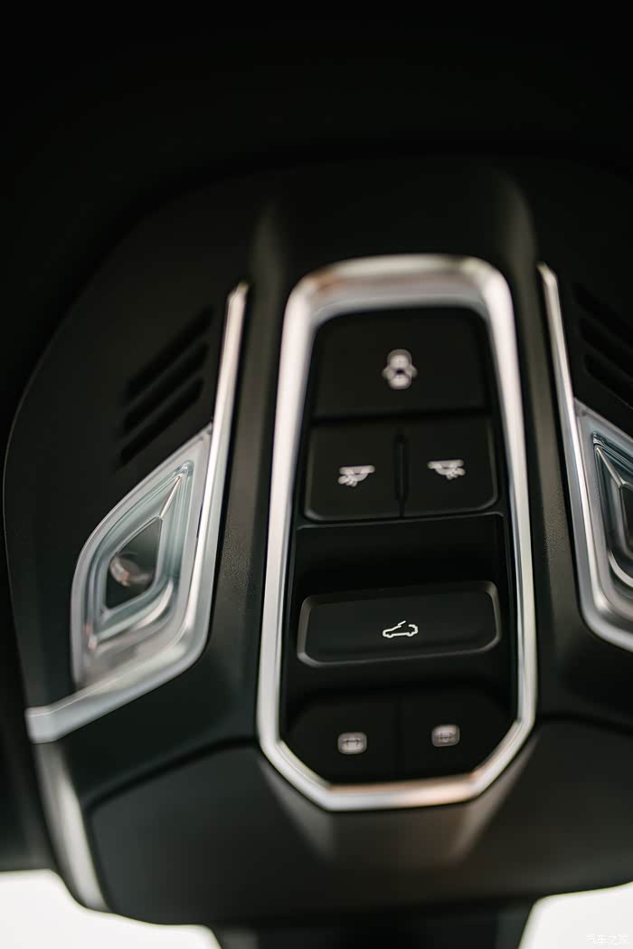 副仪表板钢琴按键通过不同材质区分为功能显示区域及物理操作按键,通过合理运用材质,突出不同的功能诉求,强化产品的科技感。