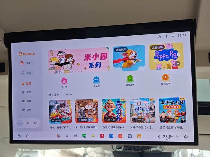 家里人满意才是买MPV的重点。内饰手能摸到的地方基本都是软的,看着不廉价。老婆最喜欢第二排那个吸顶屏,简直是“哄娃神器”!下载了喜马拉雅儿童,米小圈、西游记这些都有,孩子在后排看得津津有味,不跟我们抢手机了,我和老婆在前面听歌,互不打扰,世界清净了。