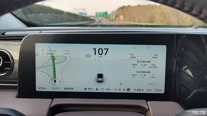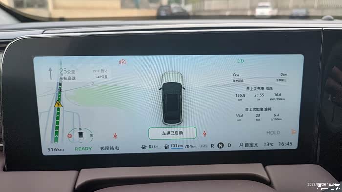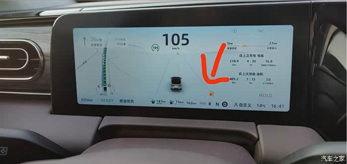 ⑩①好在一切正常,増程器没油停机后,纯电顺利介入,可以看到目前表显