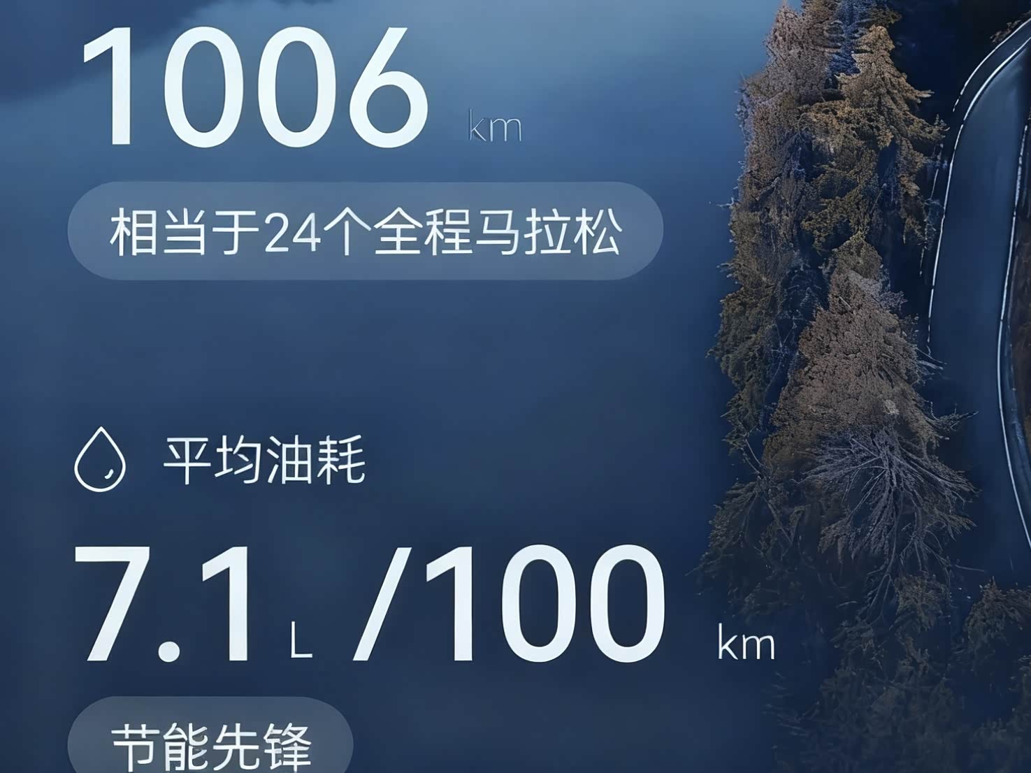 这车的油耗比较稳健,500公里左右的时候,看了下平均油耗7.1,然后这会1000公里出头的时候也是7.1,感觉还是跑点高速或者那种很直的省道才能把平均油耗拉倒7个以下吧,目前加满一箱油也就跑700公里左右。