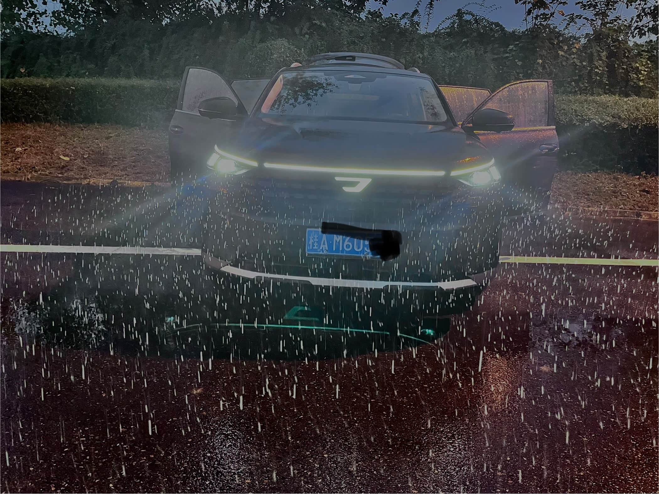 外观上捷达VS8在下雨天时候,打开车灯很有氛围感,就是前面那个车灯照在很密集的雨点上带点反光的感觉,很有电影的味道。
