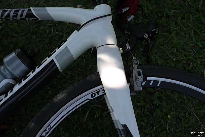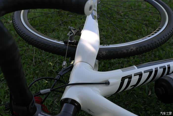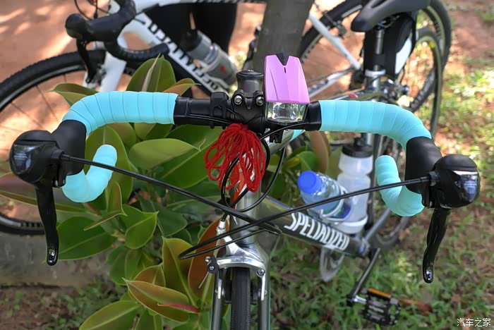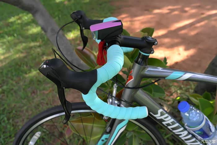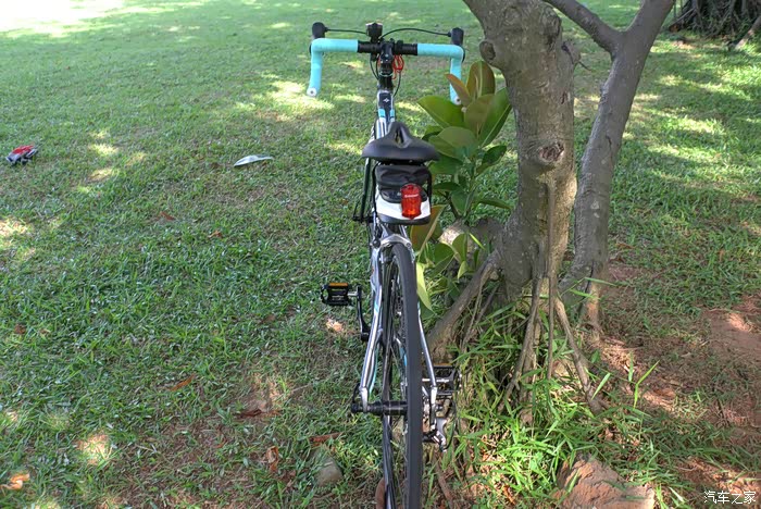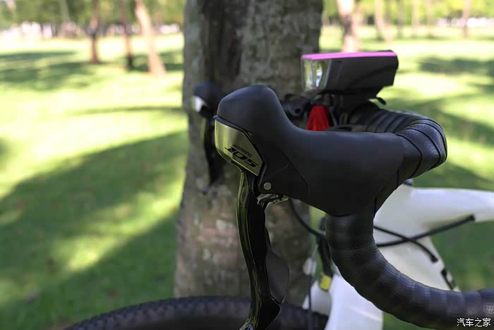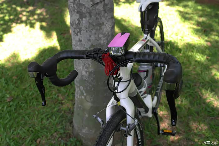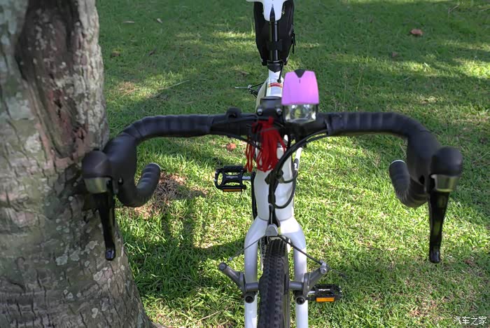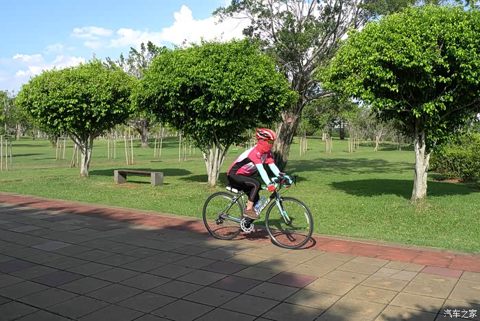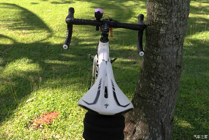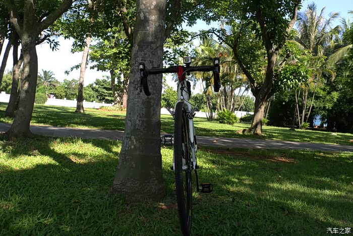 “不过,也许是我的手指有点短的原因,总觉得抓上管的时候,刹车有点难,对速度的控制也不够直接。也许如老公所说,需要适应。也许是专为女性设计的女式公路车吧,虽然尺寸是53.2CM,但因车架都比较细小,反而觉得比老公的越野公路车还小一些,当然也更秀气一些,我觉得比老公的越野公路车还漂亮。骑这辆车也是很轻松的,也没有感觉到多大压力。因为坐姿的缘故,屁屁还是有点不适应,前身向前冲的感觉,重心前移,不像山地车可以直着身体骑车。