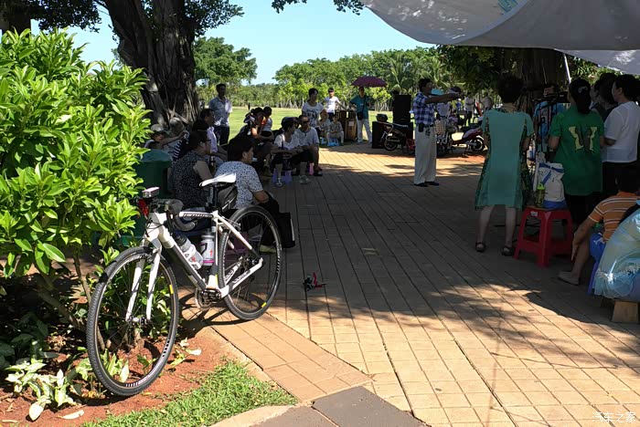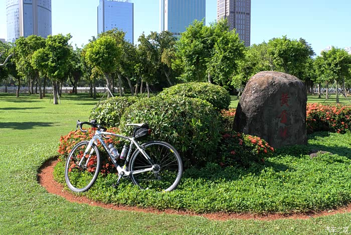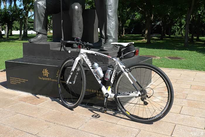 第二次是在周六,自己骑车到万绿园去练习。主要在园林道上,练习提速,真的很快,而且也省力,同样的速度,只需要山地车约80%的力量就可以达到。我在公园的绿道里骑行,因为天气热的原因,万绿园里人很少,只有一群老者在树荫底下唱歌,主要是唱一些革命歌曲,驻车听了一会就继续练习了。主要练习换档和变速。这款越野公路车安装的是禧玛诺的105套件,个人觉得换档变速也是顺利的,对得起它的名声。