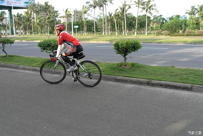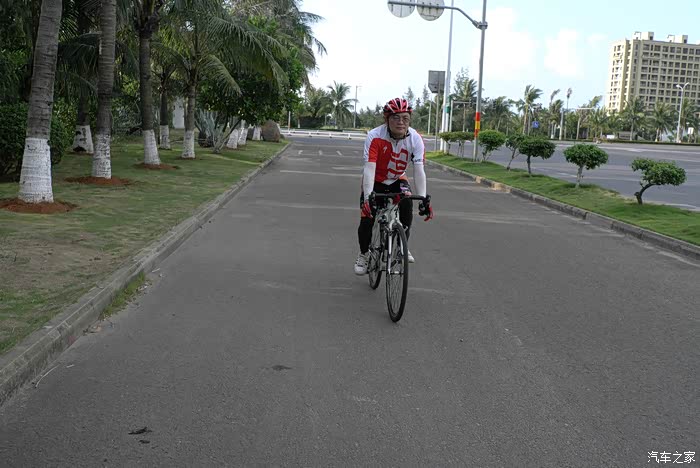 “我老公说,骑公路车可以想超谁就超谁。我觉得这怎么可能,在海口骑车的高手多了去了。但是,公路车与山地车毕竟不同,一般的公路上骑公路车还是省力不少。速度是可以上去的,当然一般的山地党在公路上都不在话下。”