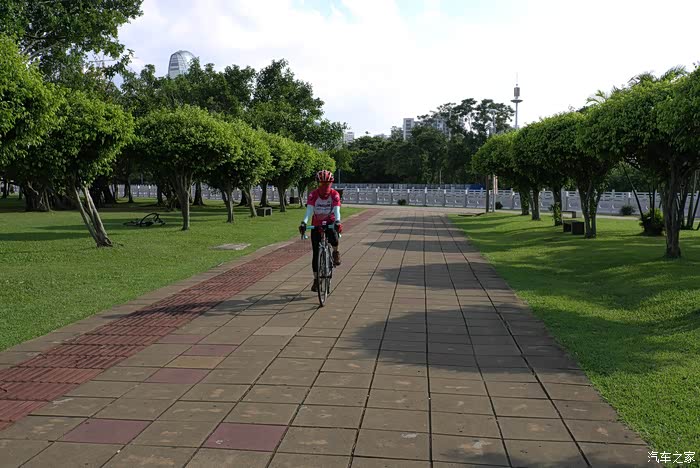 第三次也就是周六下午,与罗罗一起骑行西海岸的滨海大道。因下午天气热,我们只在绿道里面骑行。绿道上经常会有其他的电动车骑车者和行人,骑车一会快一会慢的,经常要使用刹车,充分体会了闪电越野公路车的刹车性能。手抓上管的话,刹车会够不着,或者说够着有些难度,因而刹车也不太直接,但若抓着下管的话,刹车就可以直接用手指就能够得着,刹车的效果也较好,也能更容易地控制车子和速度。也就是说刹车要适应一段时间,因为毕竟我们原来骑的是山地车,山地车的刹车就更容易一些。不过也许需要一个适应过程。