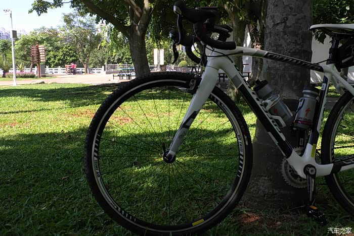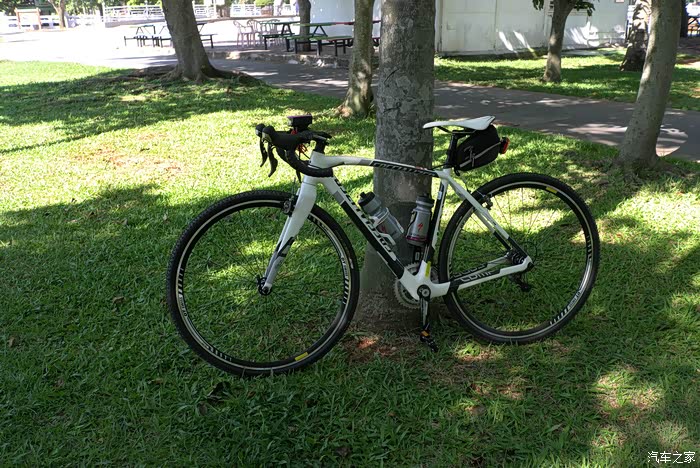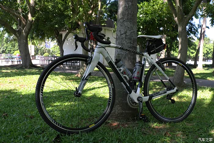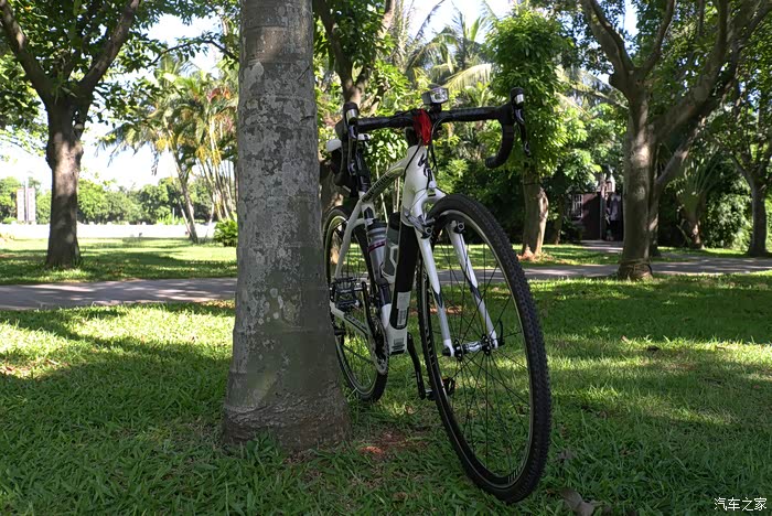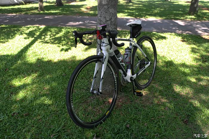先说越野公路车CRUX COMP,架长度是51.6CM,应该属于中号。与我的中等身材基本吻合,其实事先我并没有刻意的了解有关尺寸,只是目测了一下,觉得应该适合我的身材就下手了。买后就在店里配齐所有配件,包括水壶架和水壶两个,车尾包一个。从某宝上购买了车前灯和后尾灯,全部装车完毕,就可以体验了。原来觉得闪电的山地车做得很粗犷,很越野,现在发现,闪电的公路车做得也很深精致,很优雅,工艺也是一流的。