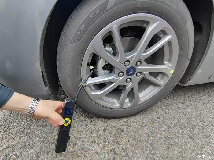 在充气过程中,我们可以清晰地看到气压数值的变化,当达到轮胎所要求的标准气压时,打气泵会自动停止工作。这种精确的气压控制避免了因气压过高或过低对轮胎造成的损害。过高的气压会使轮胎中部磨损加剧,降低轮胎的抓地力,影响蒙迪欧在行驶中的稳定性和操控性;而过低的气压则会增加轮胎的滚动阻力,导致油耗上升,同时也会加速轮胎两侧的磨损,缩短轮胎使用寿命。有了这个能精确控制气压的打气泵,我们可以时刻保持轮胎处于最佳状态,充分发挥蒙迪欧的性能优势。