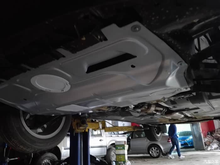 铝合金护板,无共振,就是特别硬,变形后不能平,只能换,其实铁的用两年再拆下来也没心情平了,上锈可难看了