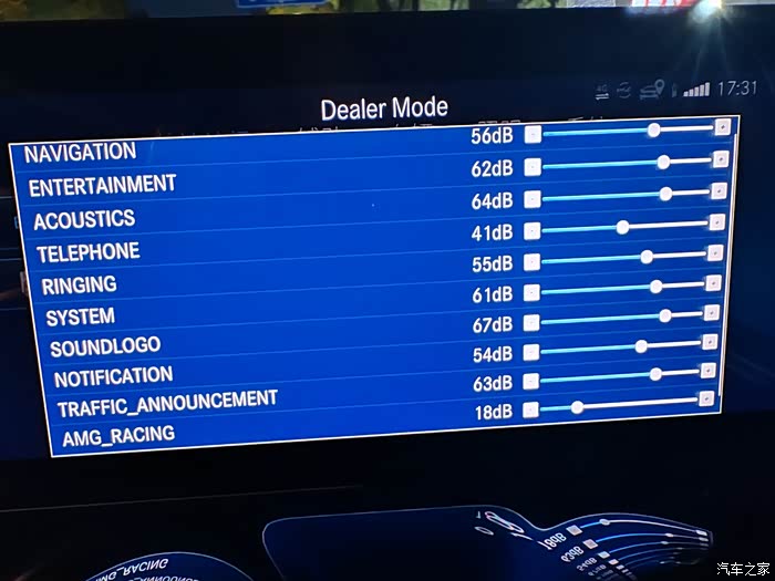 进入界面后点击Auido Volueme,这个栏目里面有6个小项,要进入每个小项里面将AMG-RACING都拉到零,然后退出就可以永久关闭了。要注意的是6个小项都要这么做,否则就会自动复原。