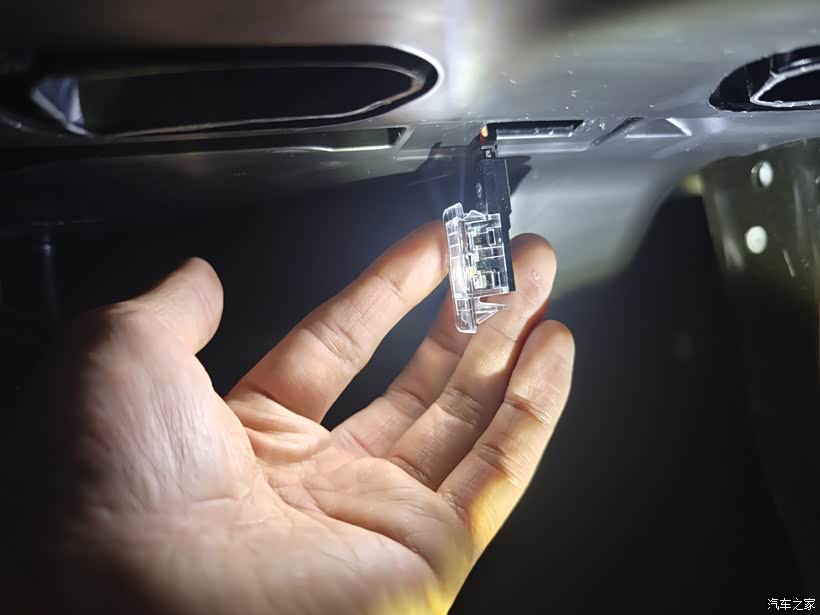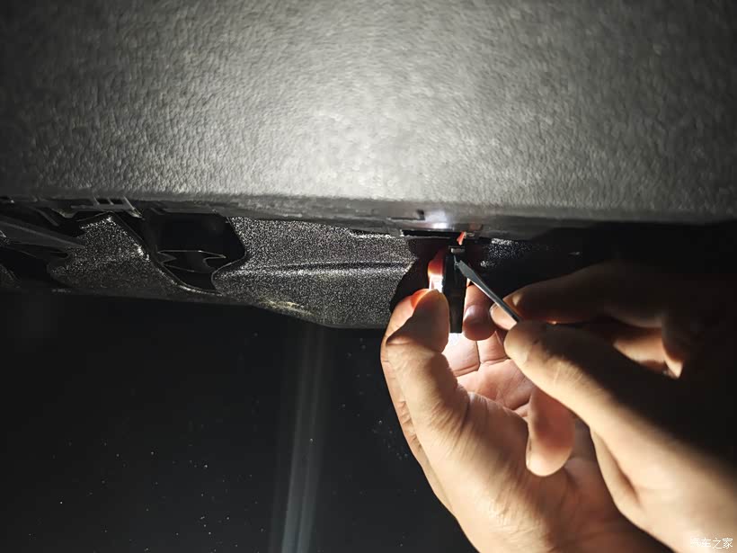 第一步:先拆除原车自带的四个脚窝灯,前后各两个,前排和后排的拆解方式不同,但他们两两一组。