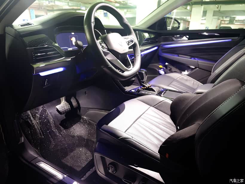我这款帕萨特是2023款豪华版的,它是有一个原厂自带的十种颜色的氛围灯,但底下的脚窝灯就是那种白白的暖光。