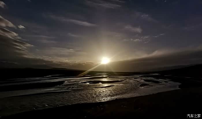 出了村庄,便放开速度跑,真是没感觉到后车轮,两个宽度不一致。很快左拐向北,这是通往野牛沟乡方向的纵向山谷。随着高度逐步上升,云层贴着山头在飞驰,山野间忽明忽暗,一直到4130米的热水达板,天空明朗一片,傍晚的阳光通过云层折射到宽阔的黑河河谷,突显出高原的时差也是随着山峰转换的。