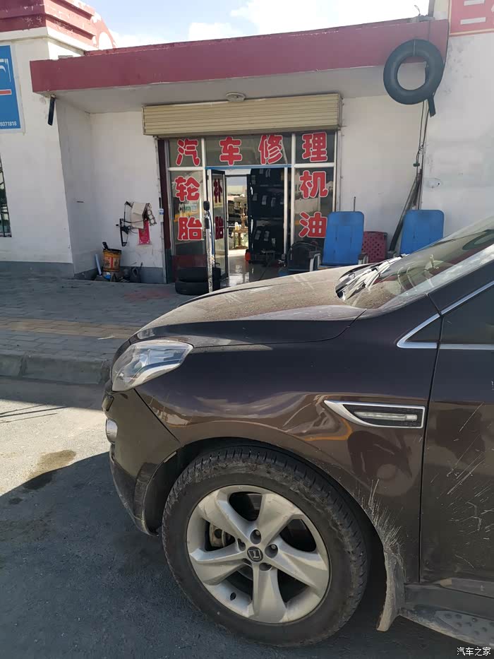 过了永贵加油站,第一家店铺就是汽修店。老板是个精干的中年人,操着点有南方口音的普通话,问明情况就操工具来卸轮胎。他看到车牌便聊起来,说江苏来的车子不少,今天还有一辆无锡的。听到我说南京的,就更高兴了,他是镇江的,再追问是大港的。