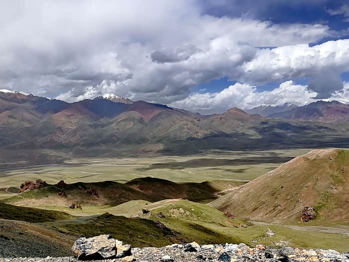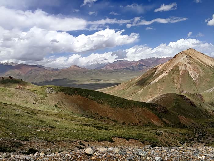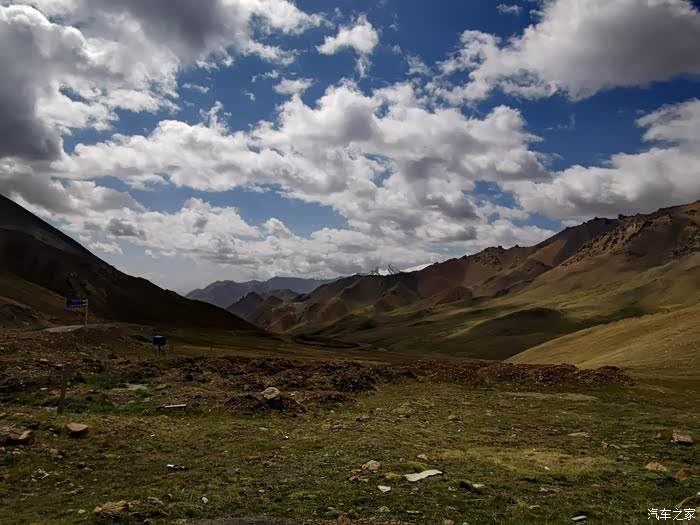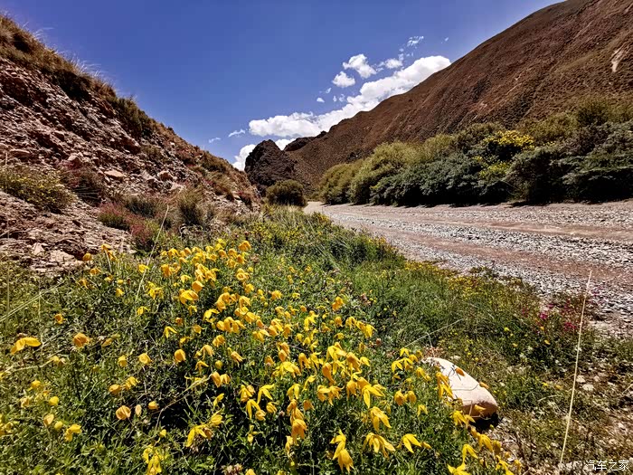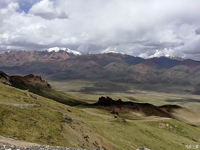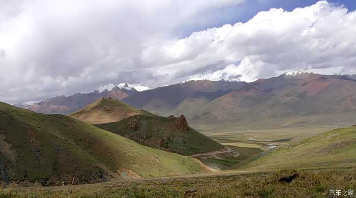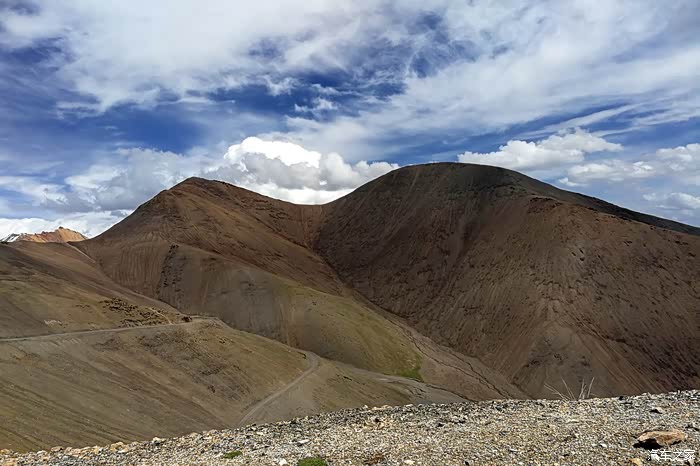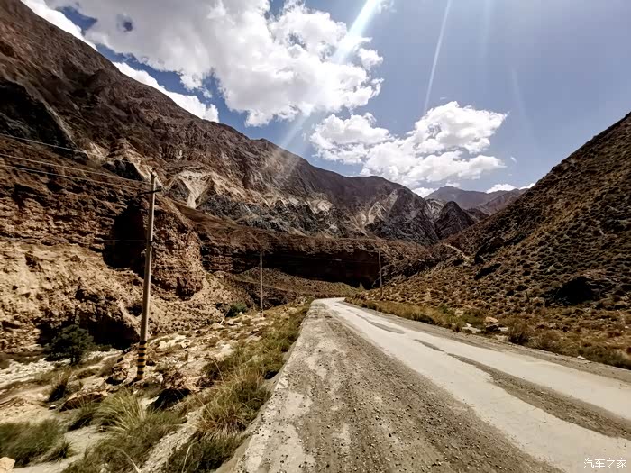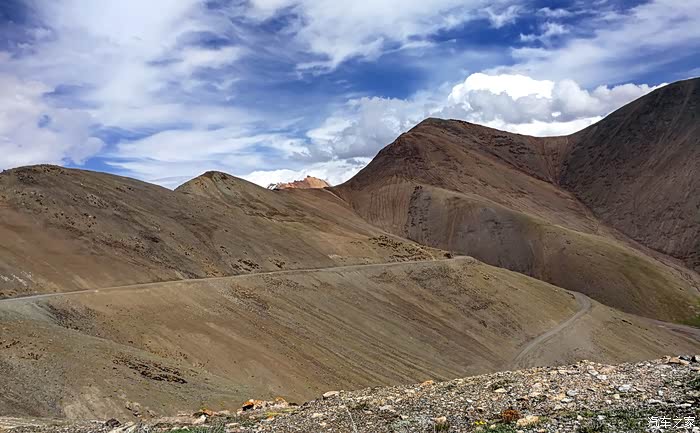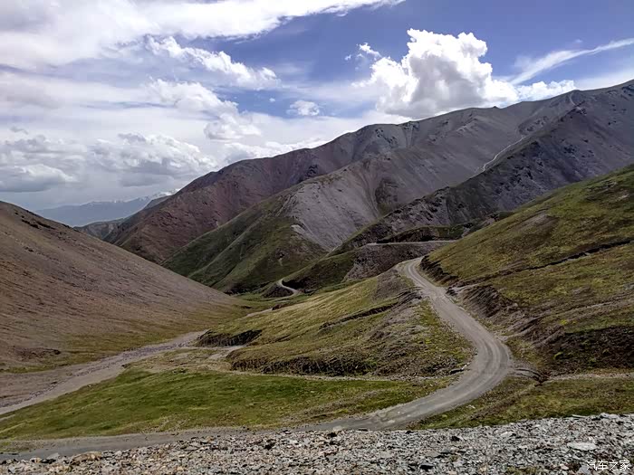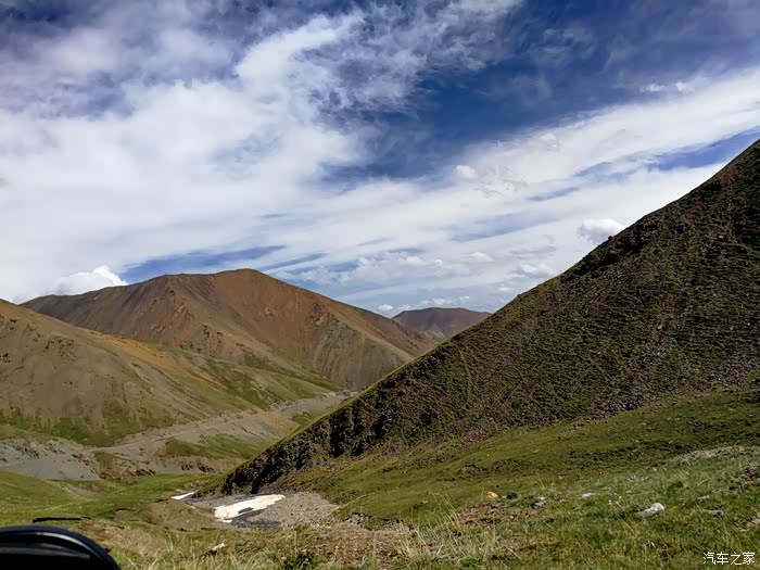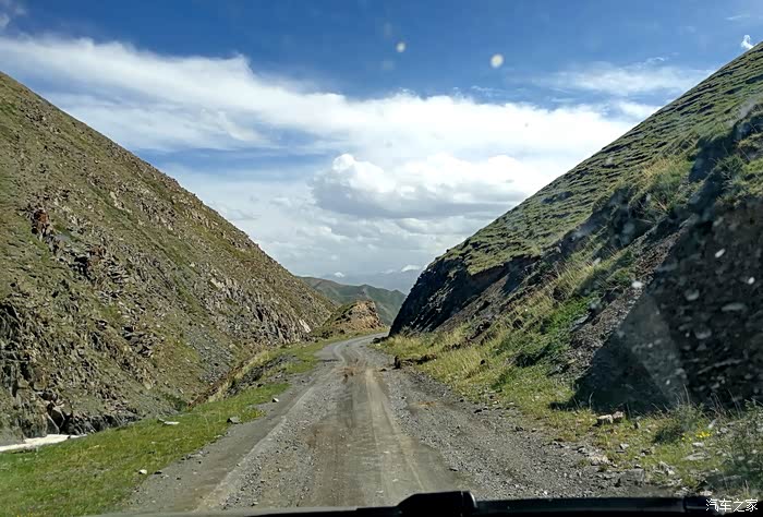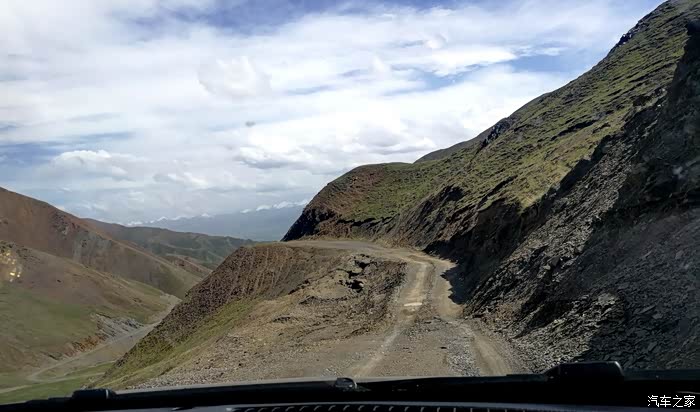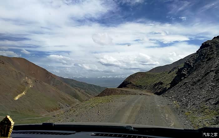 转弯后,看到山谷里弯弯曲曲的山路,指向山峦边缘的时候,感觉到希望之光已经照耀到我们头上。地图上显示,走完二只哈拉垭口的下山道路,后面基本上就是坦途。目前还不能盲目乐观,必须小心谨慎,应付可能出现的各种路况。