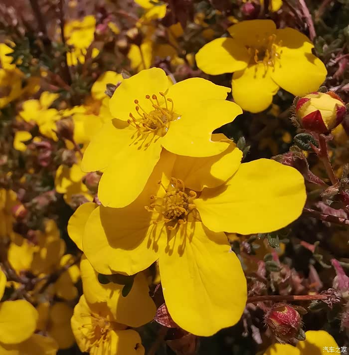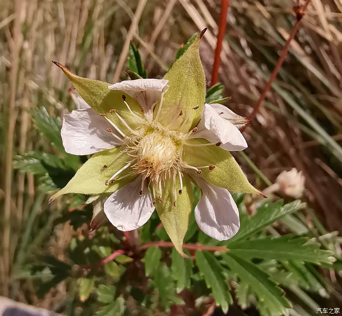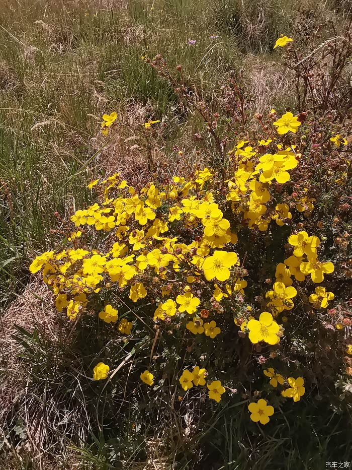 还有一丛灌木,缀满了金黄色的五瓣花朵,叫做花莛驴蹄草。这时看到对面的山里云层变厚,移动加速,要变天了!