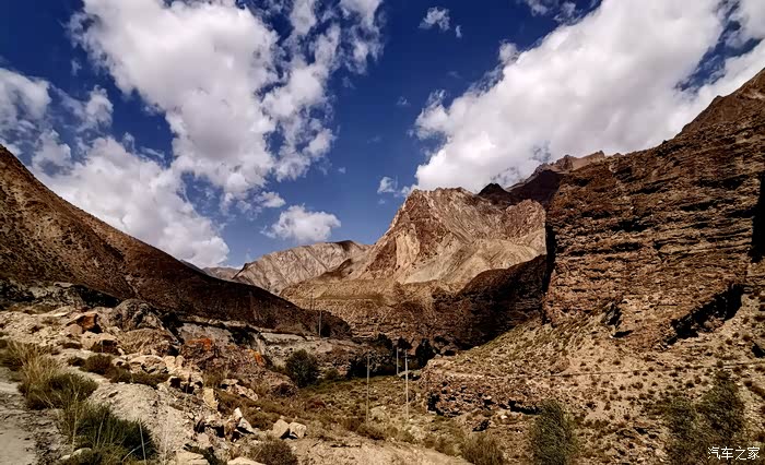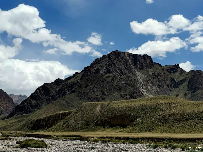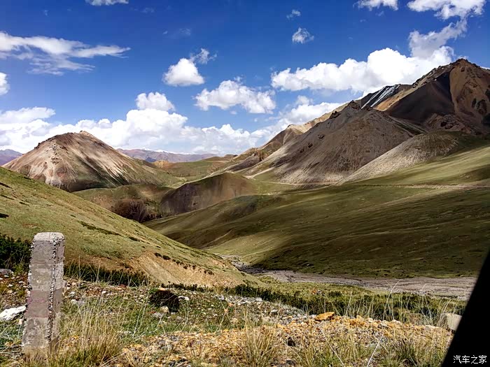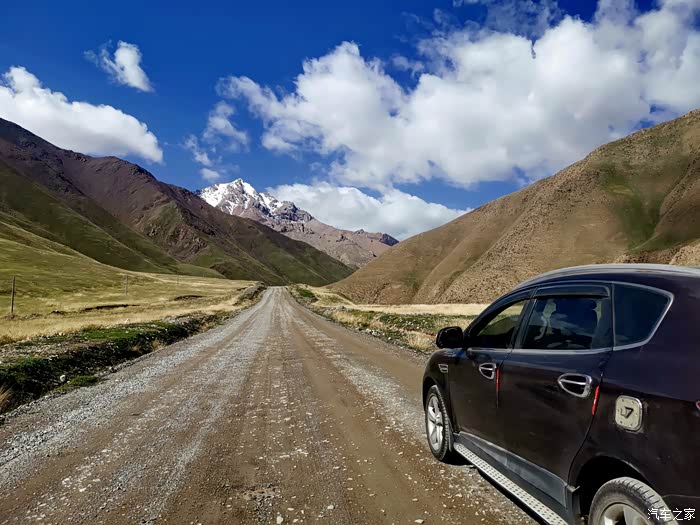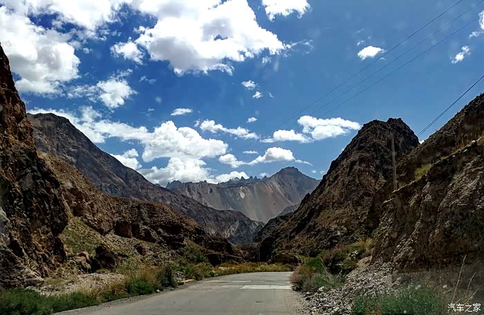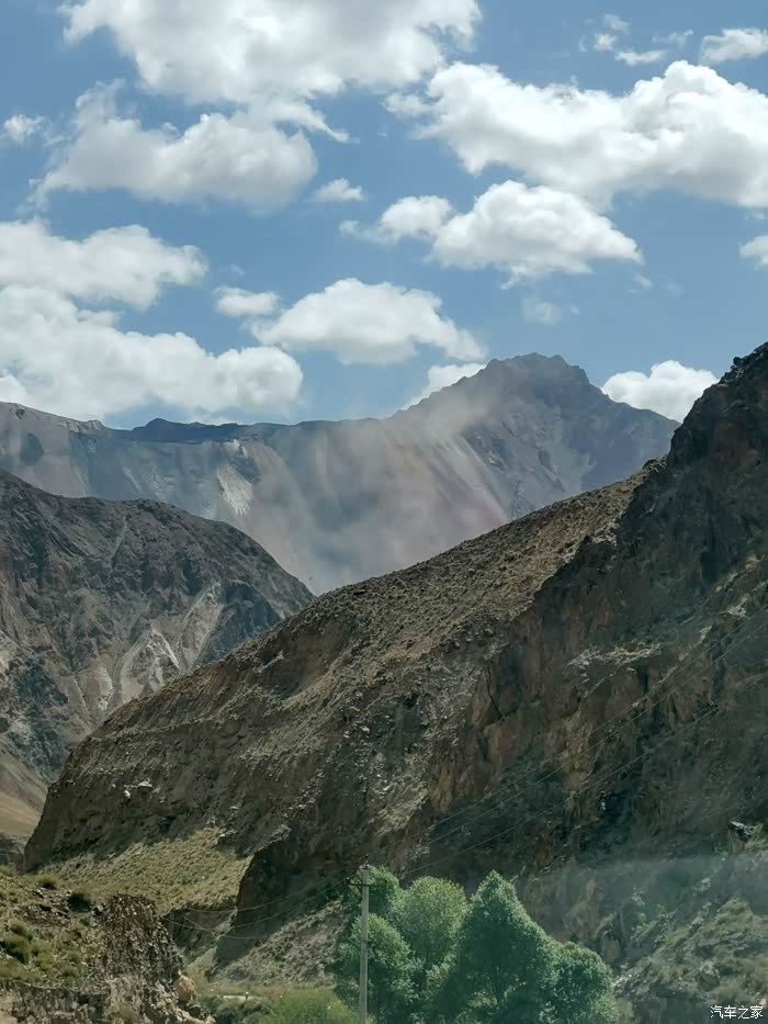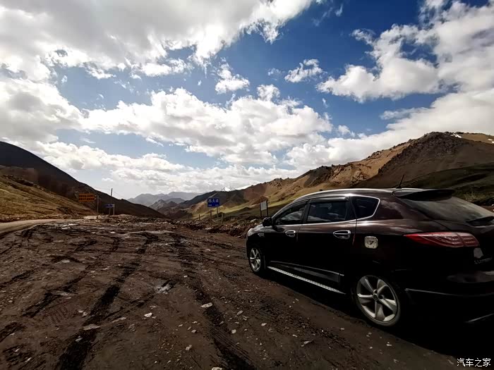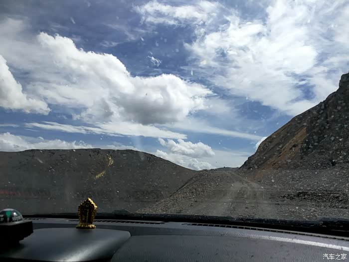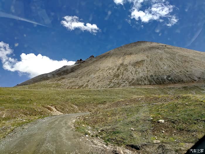 无奈之下只有撤去千斤顶,看看效果。撤去后,车胎只有后轮一半高度,再启动行驶到路上,还算凑合。揣着一颗忐忑的心,小心翼翼地沿着山路龟速前行,途中还不完提醒LD拍照,记录这一段特殊的行程。你看那低矮的云层,在蓝天上快速地移动,大七在散布落石的砂石路上缓慢移动,生怕再次出现问题,此刻是15:50。