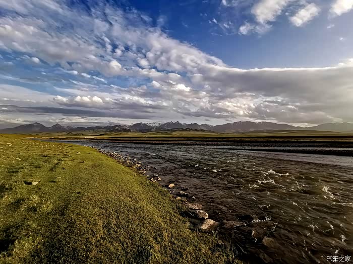 2017年是从八一冰川回来时,见识了正午时分的祁连山河谷草原。现在黄昏时分,牛羊归圏,牧人还家,游人无存,微风拂面,河水滔滔,远处的群山在云层下显得低矮一片,呈现一片静谧的景象。如果不去县城住宿,我愿意静静地在草地上,坐看祁连山的山川变幻,直到天黑。