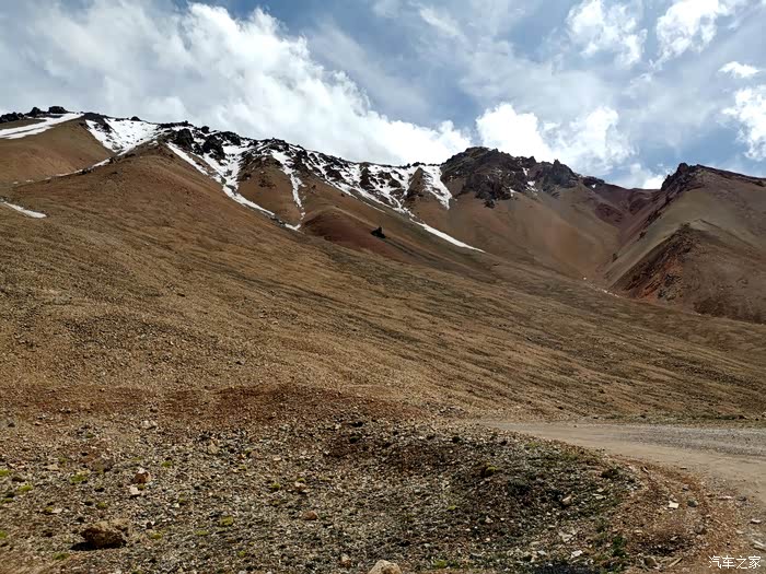 土达坂下来进入白杨河路段,路况是不用说了,都是大车压坏了,遇到几辆矿山出来的大货车,小心避开。好在都有护栏。85km到达吊达坂,海拔4031米,周围山头环峙,视野不开,一片荒芜。